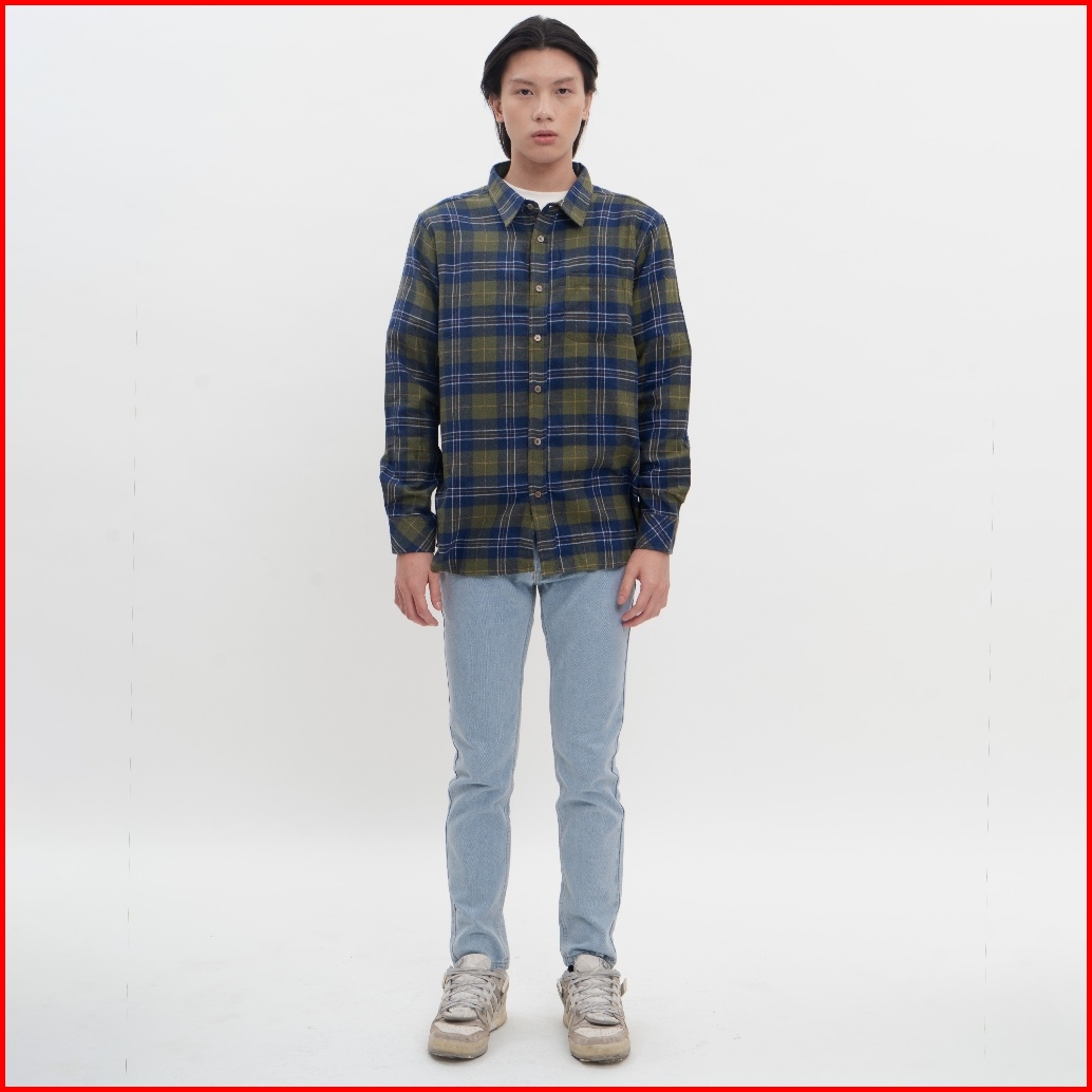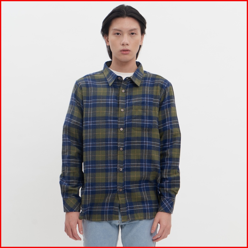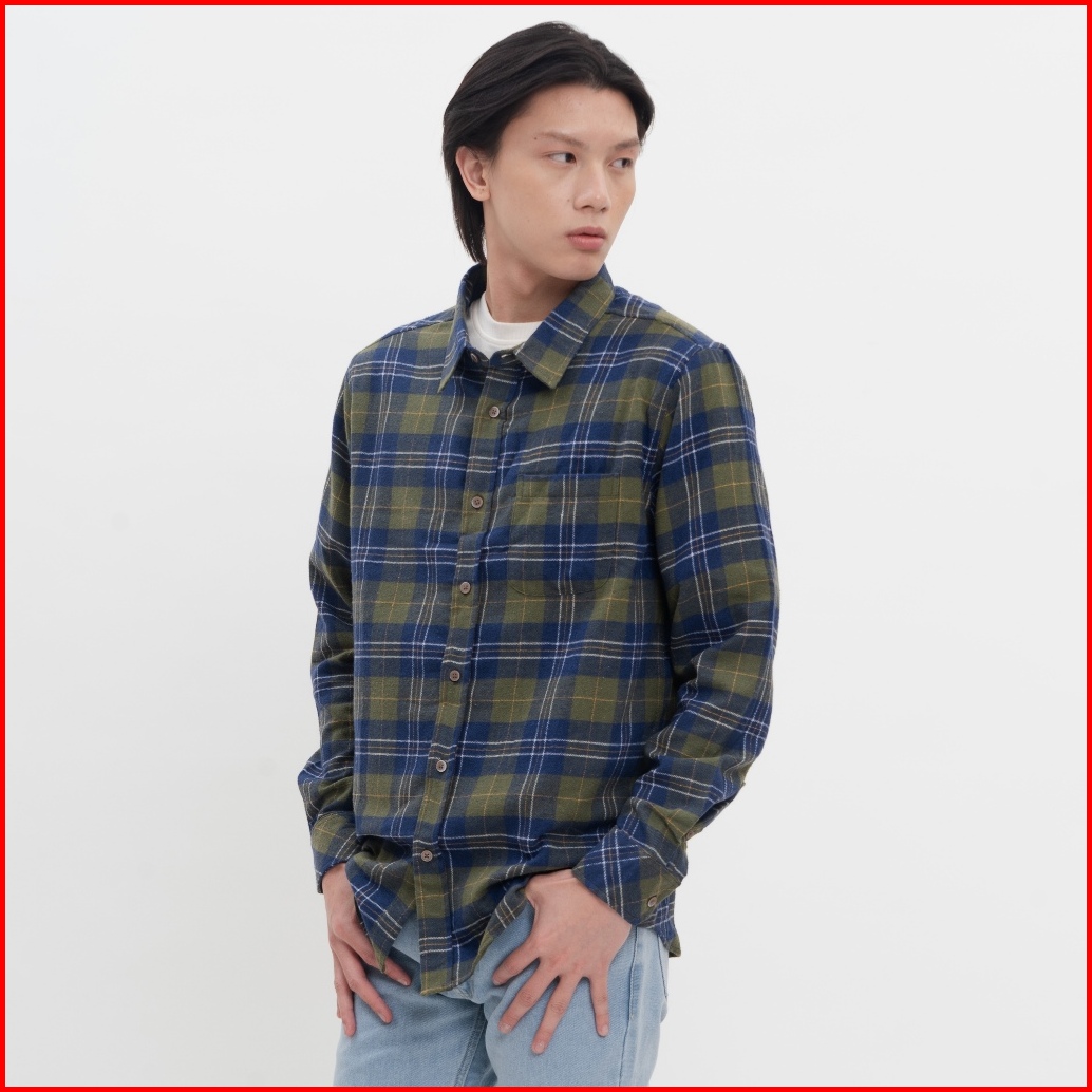 M231 Kemeja Pria Flannel Panjang Hijau 0145