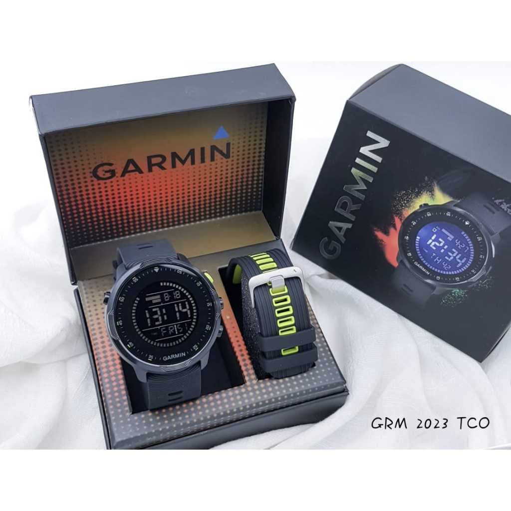 JAM TANGAN PRIA GARMIN DIGITAL TALI RUBBER FREE RUBBER CADANGAN BODY BULAT TANGGAL HARI AKTIF BOX EXCLUSIVE