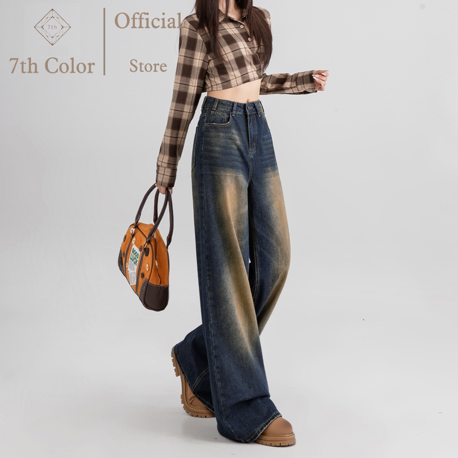 7th Color / Vintage Jeans Panjang Wanita Celana Korean Style Celana Kulot Denim