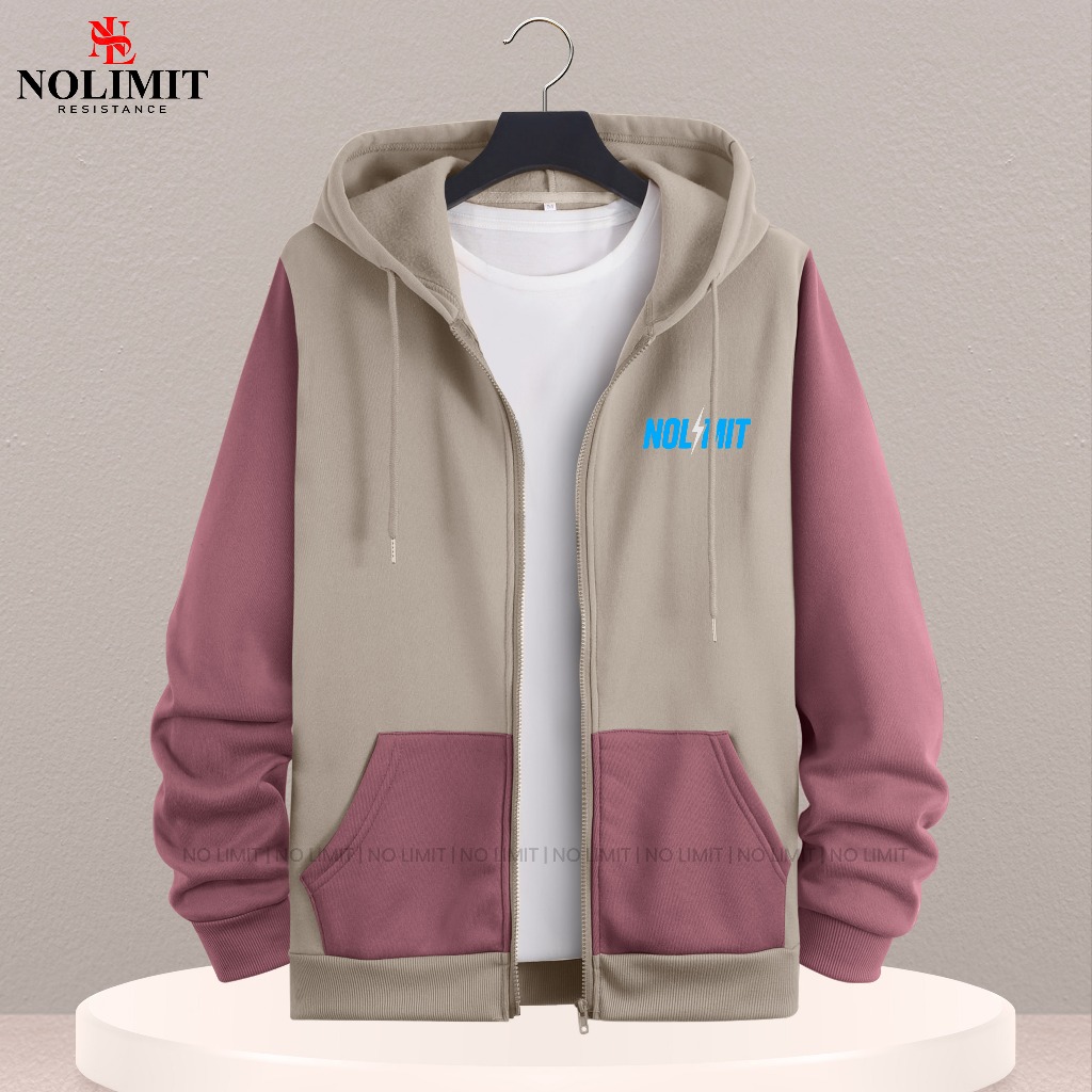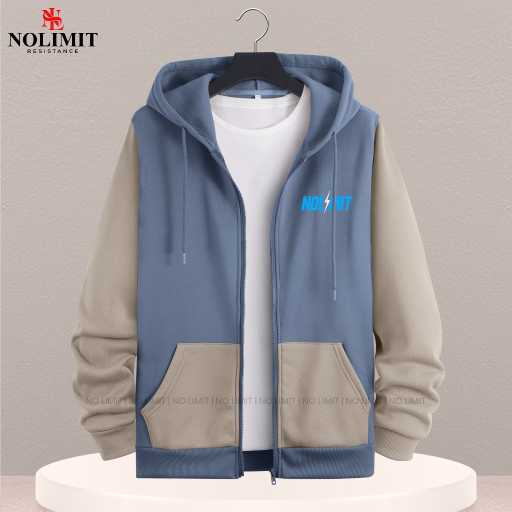 Jaket Hoodie Resleting Kombinasi Unisex Pria Wanita Bahan Fleece NL FLASH Size M - XXL NO LIMIT