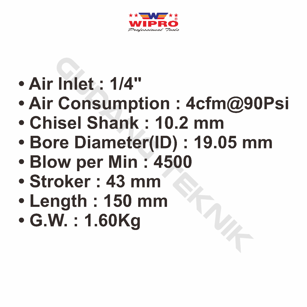 Air Ping Hammer 1/4" Wipro Wfh-1040 1150 / Alat Bobok Angin 1/4Inch Wfh1040 - Alat Pahat Angin Wipro Wfh 1040