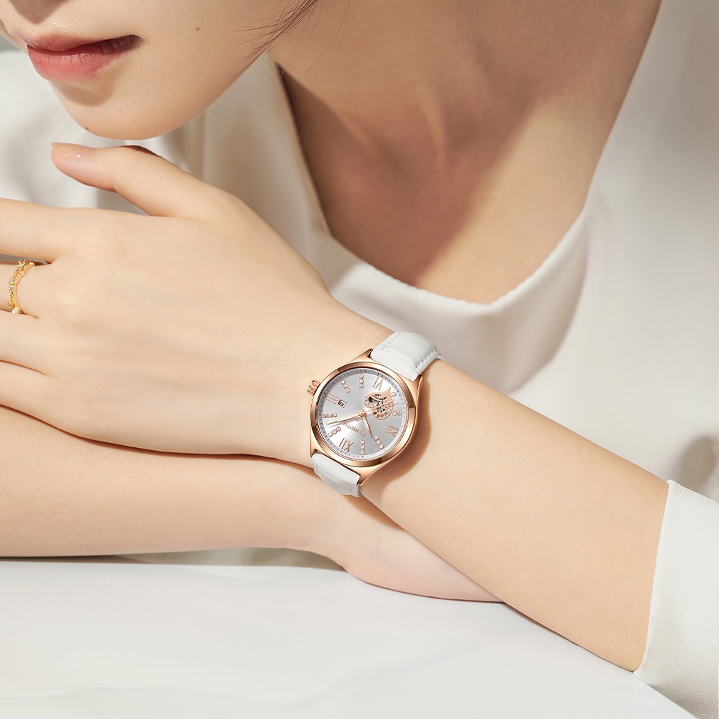 REBIRTH JAM TANGAN WANITA BERLIAN ANTI AIR ORIGINAL MEWAH ANGGUN CALENDAR TALI KULIT KUARSA JAM TANGAN CEWEK