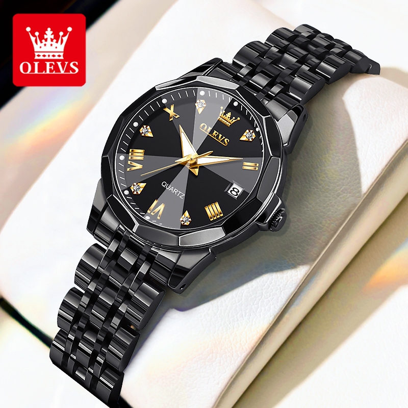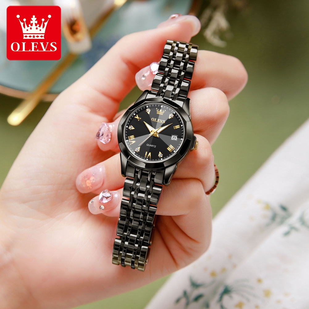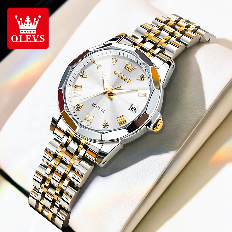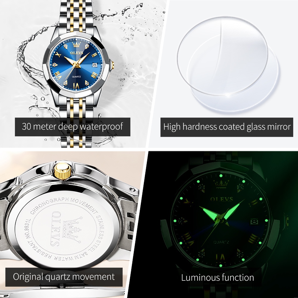 OLEVS JAM TANGAN WANITA ANTI AIR ORIGINAL 100 PERSEN RESMI KEKINIAN ELEGAN MEWAH CEWEK KALENDER ANALOG LUMINOUS STAINLESS STEEL WOMEN WATCH MODEL 9931