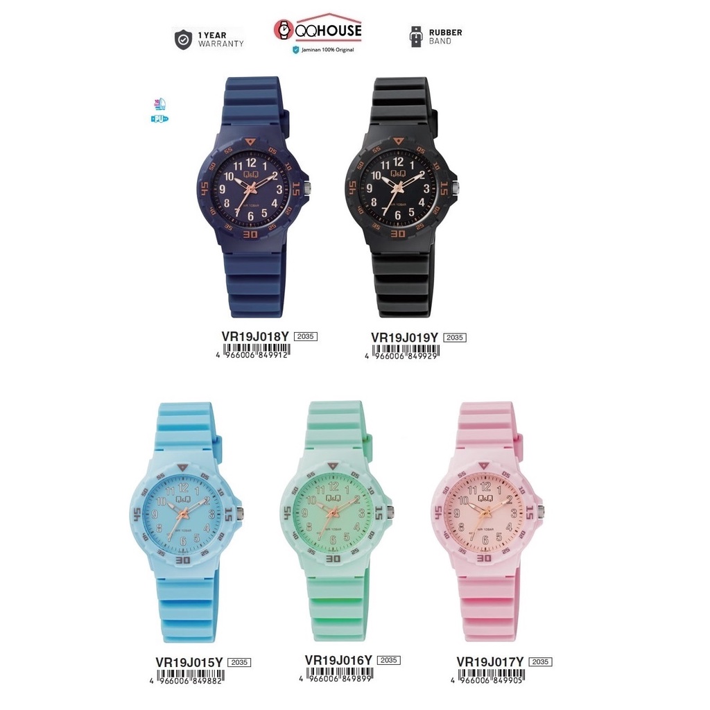 Q&Q QNQ QQ VR19 VR19J SERIES ANALOG WATCH RUBBER BAND JAM TANGAN WANITA / ANAK TALI KARET