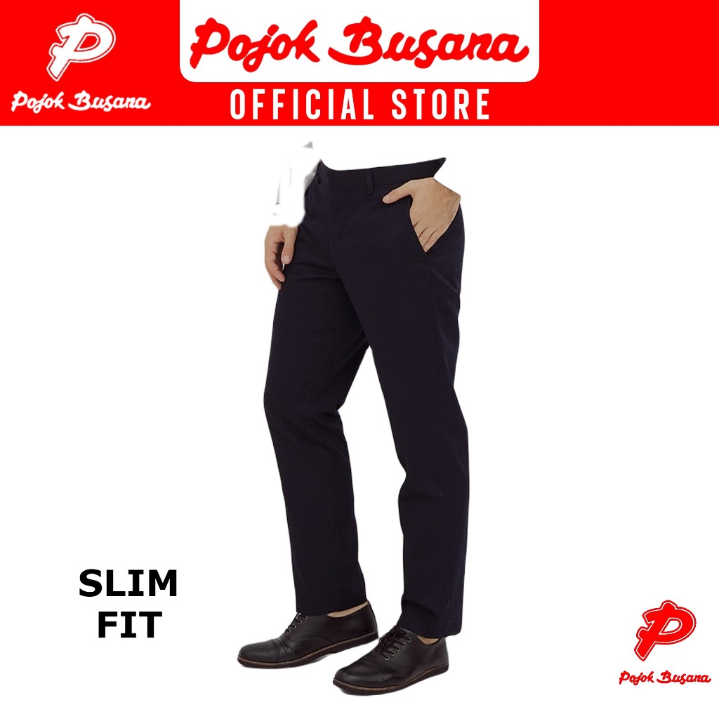 Pojok Busana Celana Panjang Formal Alisan Slim Fit Pria - Celana Kerja Bahan Cowok Sopan - Hitam
