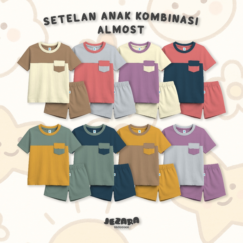 Jezara Setelan Kaos Polos Anak Mix Basic ALLMOST Usia 1-12 Tahun