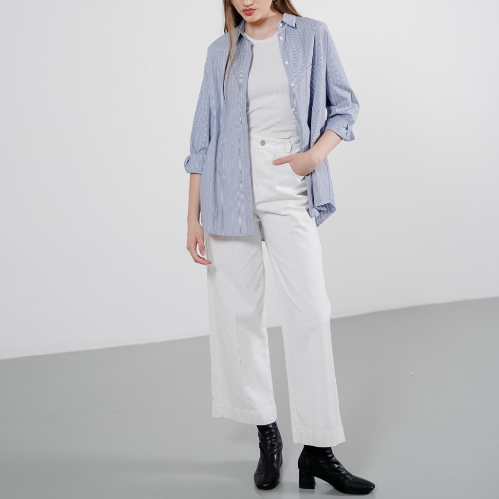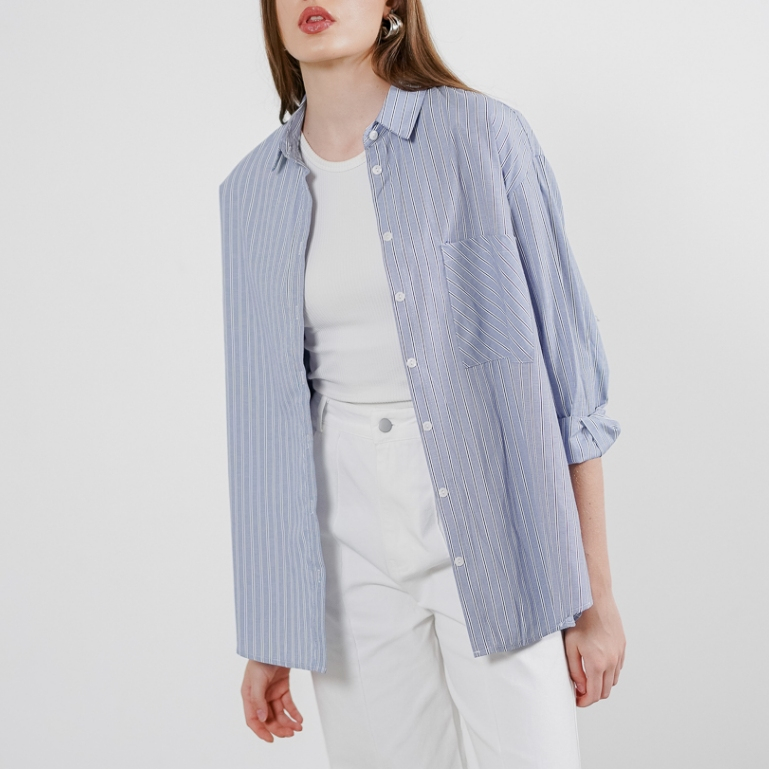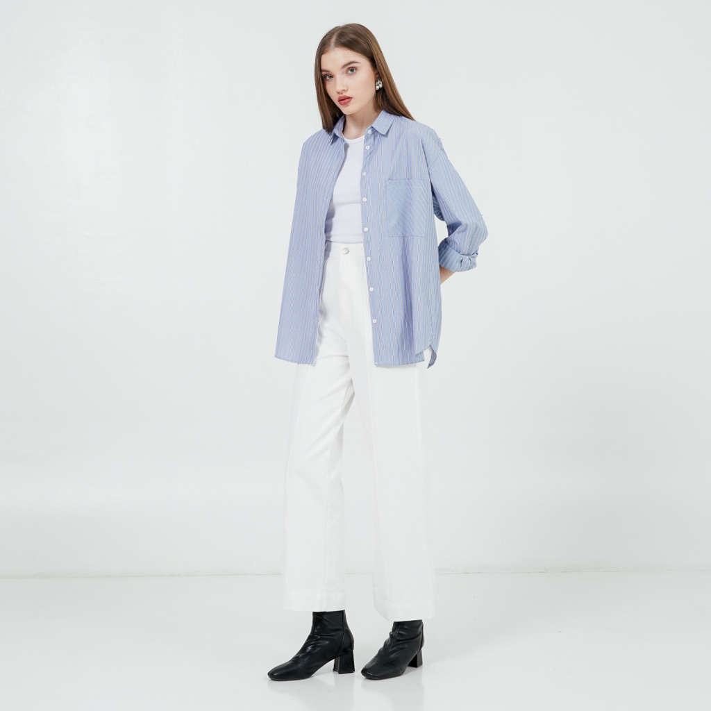 This Is April Atasan Kemeja Striped Oversized Wanita Hijab Friendly Lengan Panjang Ryann Top Blue Original Best Seller