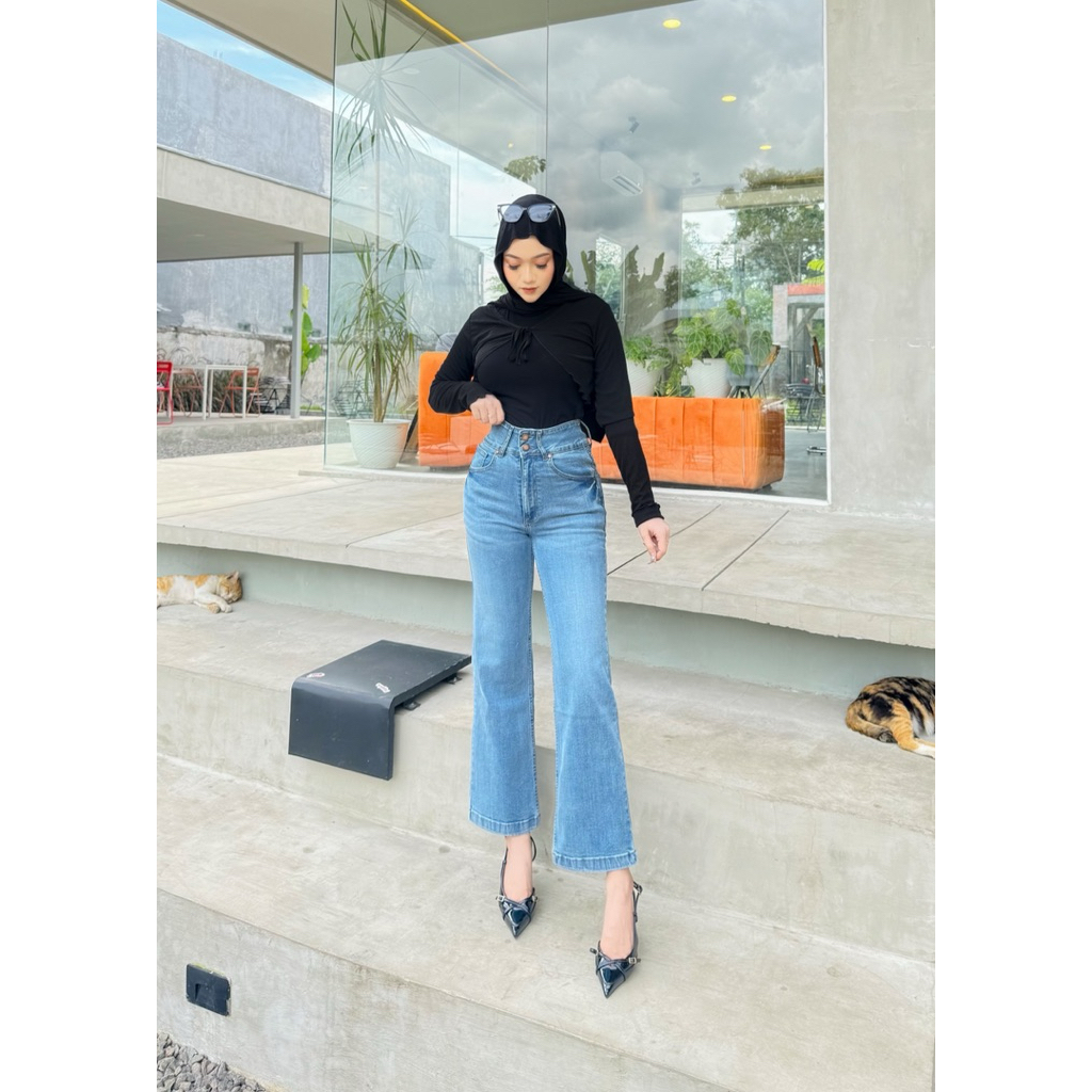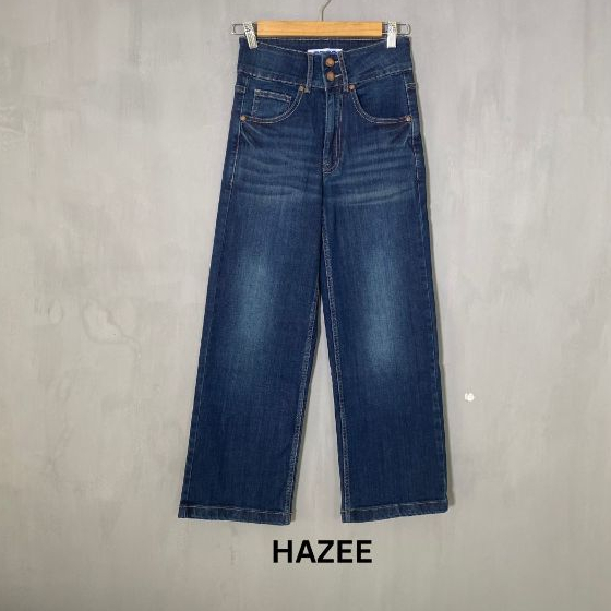 HAZEE - NAURA | celana jeans wanita kulot highwaist kancing 2 bahan melar premium denim