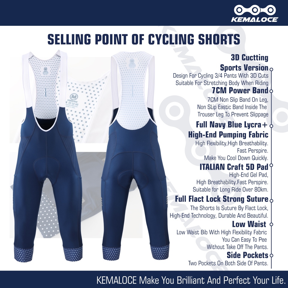 Kemaloce Celana Sepeda Pria 3/4 Padding Biru&Hitam&Abu-Abu Bantalan Gel 5D Gunung Celana Pendek Sepeda Roadbike Kelas At
