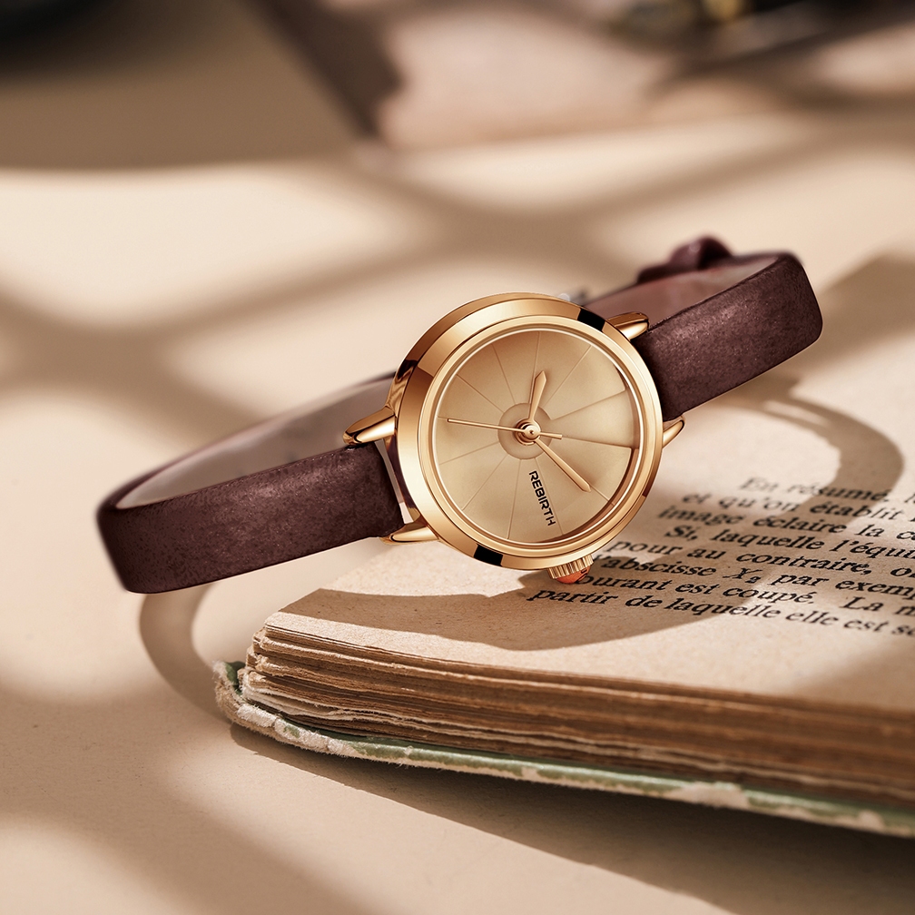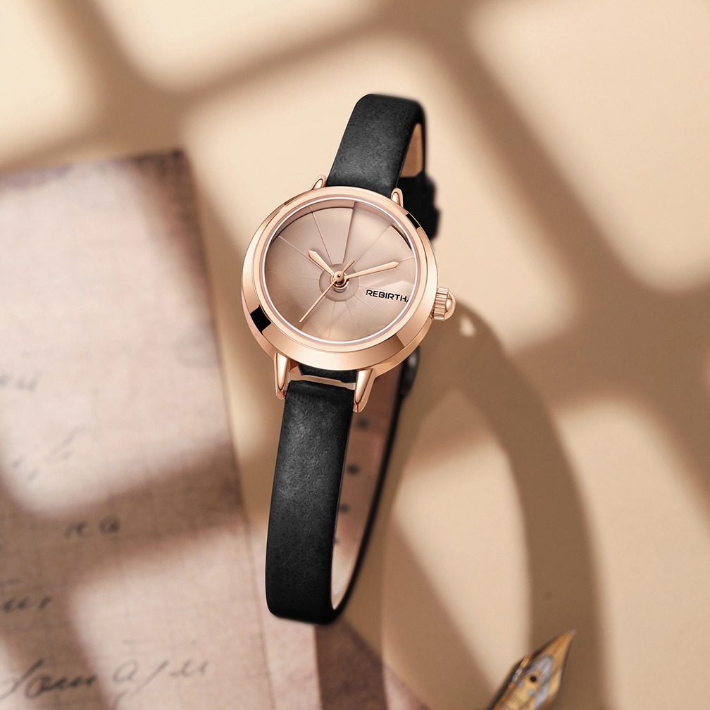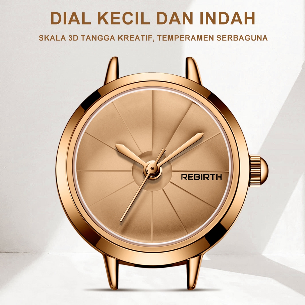 REBIRTH JAM TANGAN WANITA FASHION SMALL DIAL TALI KULIT QUARTZ 2049