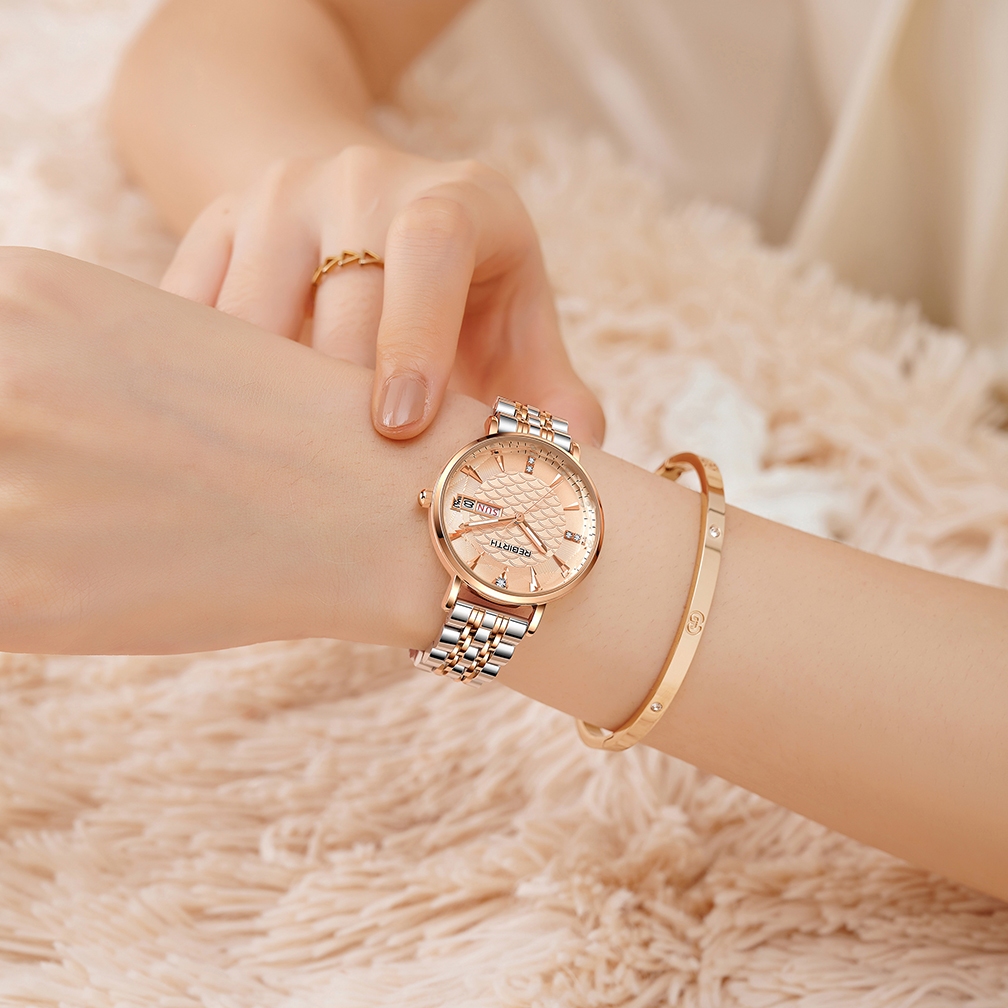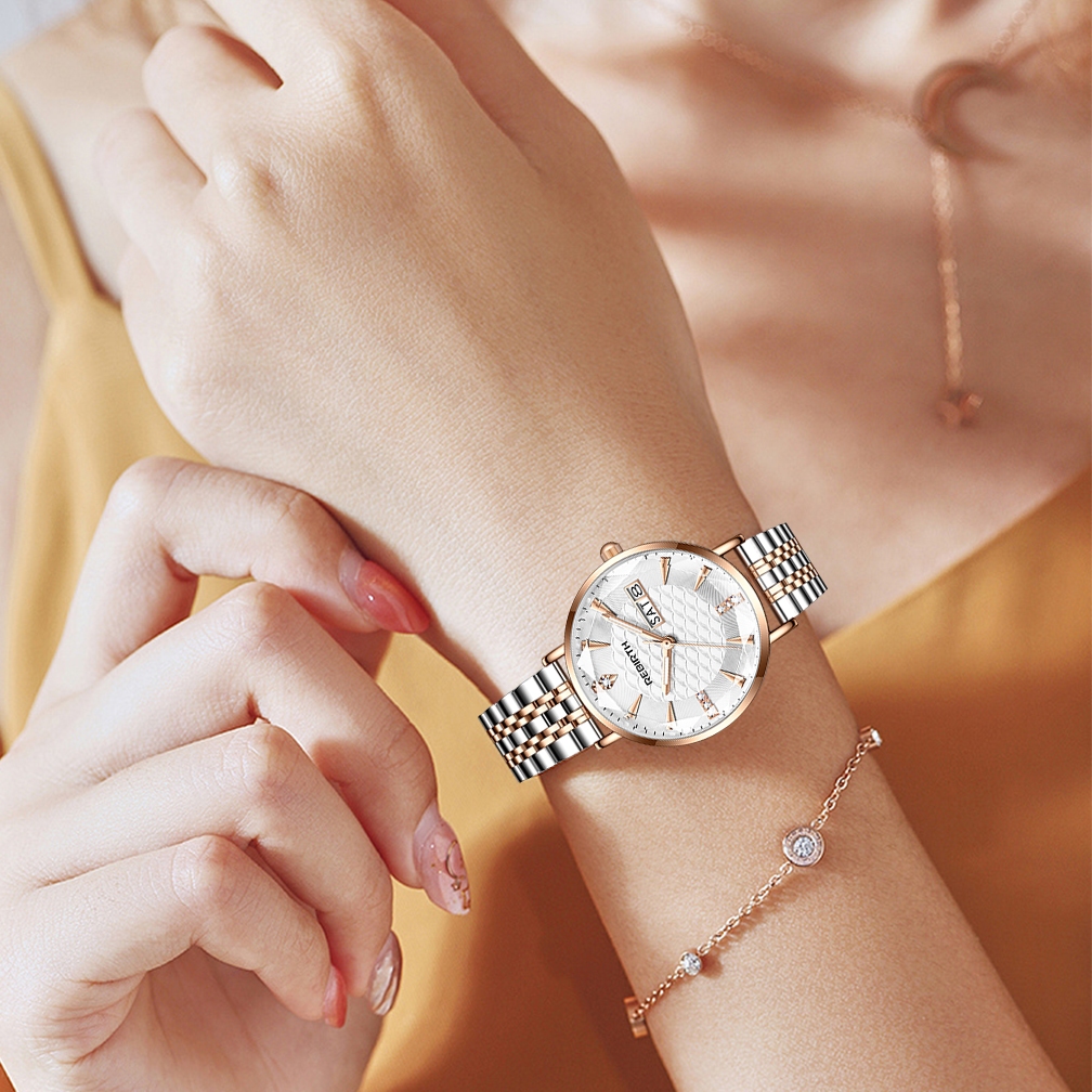 REBIRTH JAM TANGAN WANITA ANTI AIR MODE CLASSIC TALI STAINLESS STEEL 2031