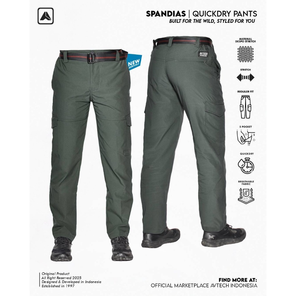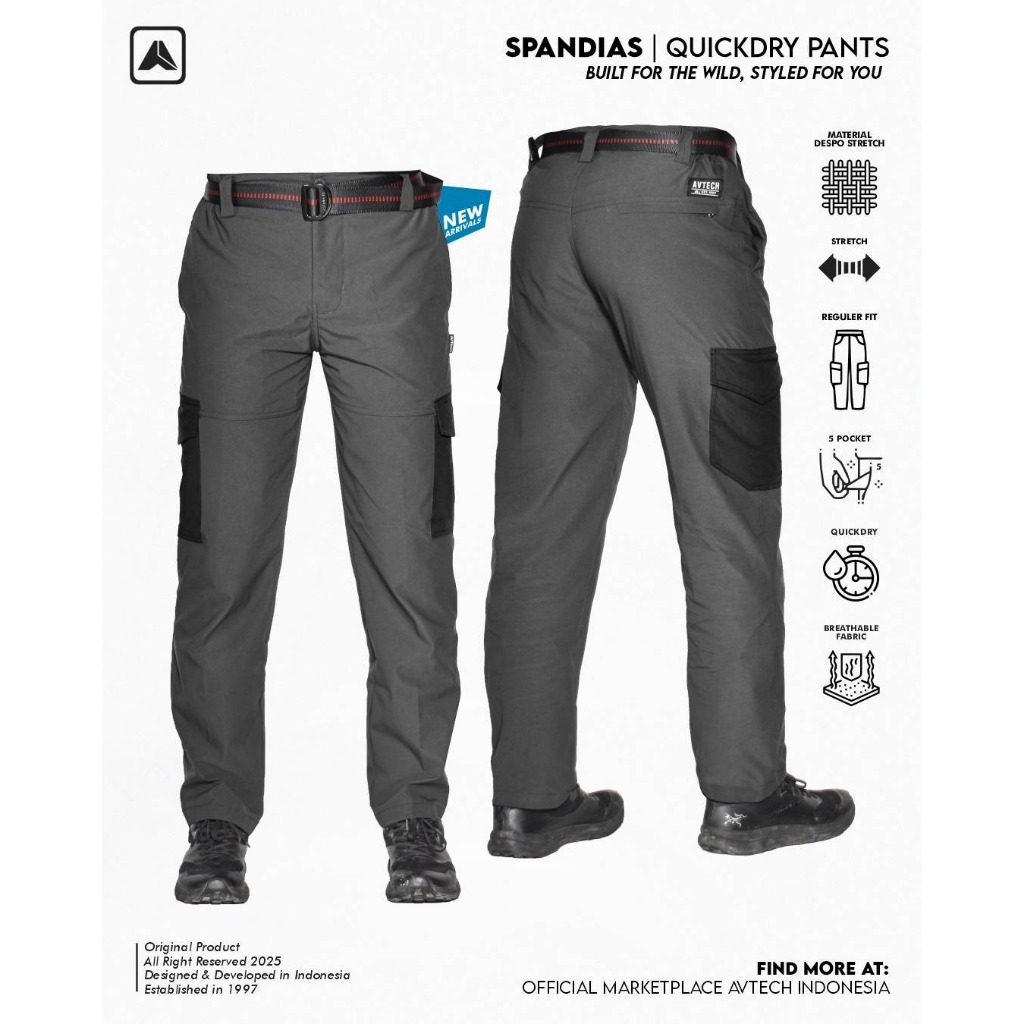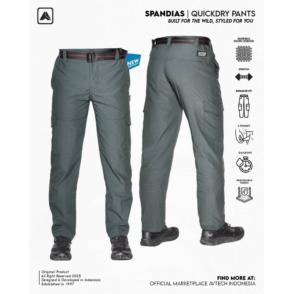 Avtech - Celana Panjang Cargo Gunung Outdoor Kerja Lifestyle Quick Dry Reguler Fit - Spandias