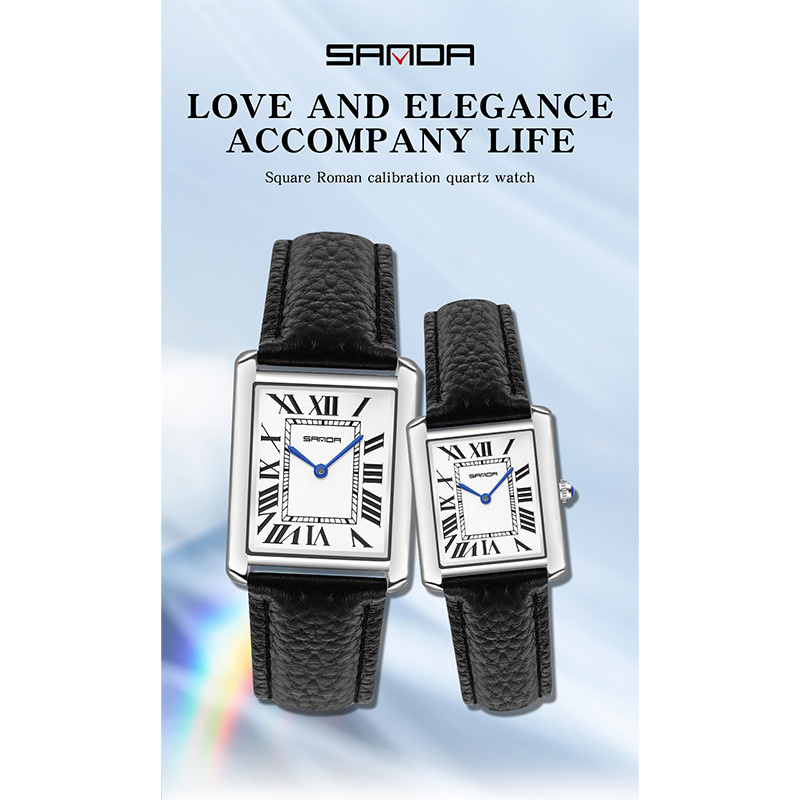 SANDA 1108 JAM TANGAN PASANGAN MEREK MEWAH BARU JAM TANGAN KUARSA TAHAN AIR PRIA WANITA JAM TANGAN PERSEGI WANITA TALI KULIT
