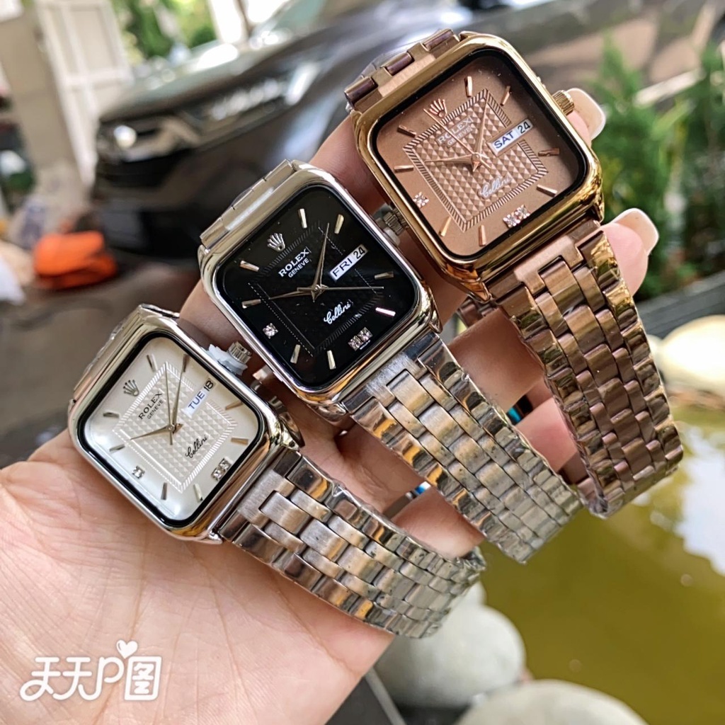 JAM TANGAN WANITA ROLEX RANTAI BODY SEGI TANGGAL AKTIF HARI AKTIF INCLUDE BOX ORIGINAL ANALOG QUARTZ ANTI AIR TALI STAINLESS || JAM TANGAN FASHION CEWEK JAM MURAH
