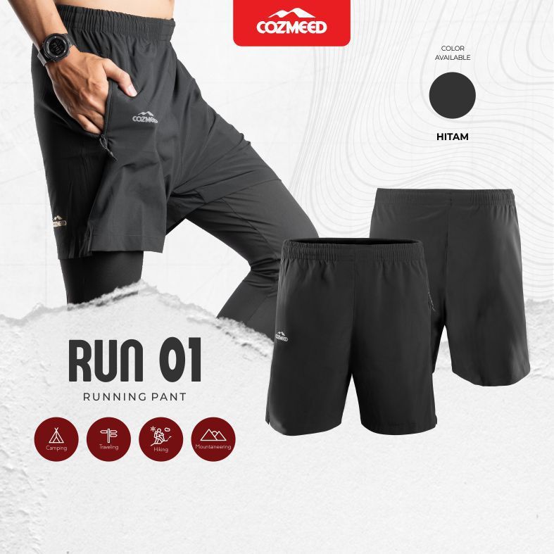 Cozmeed Celana Pendek Olahraga Pria Run 01 Hitam