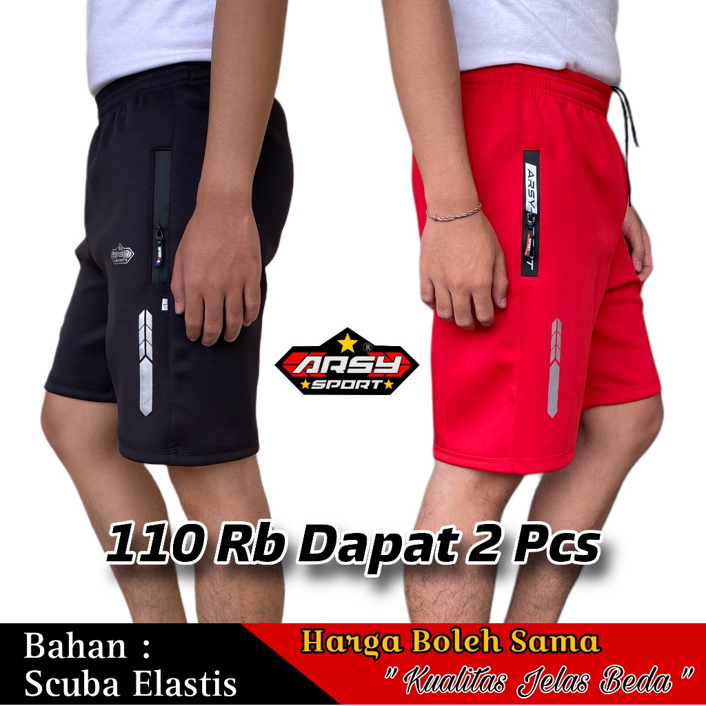 Paket 110Rb Dapat 2 Pcs - Celana Running Pria Arsy Sport Short Pant Gym Sc003 - Bahan Scuba Elastic Adem Nyaman