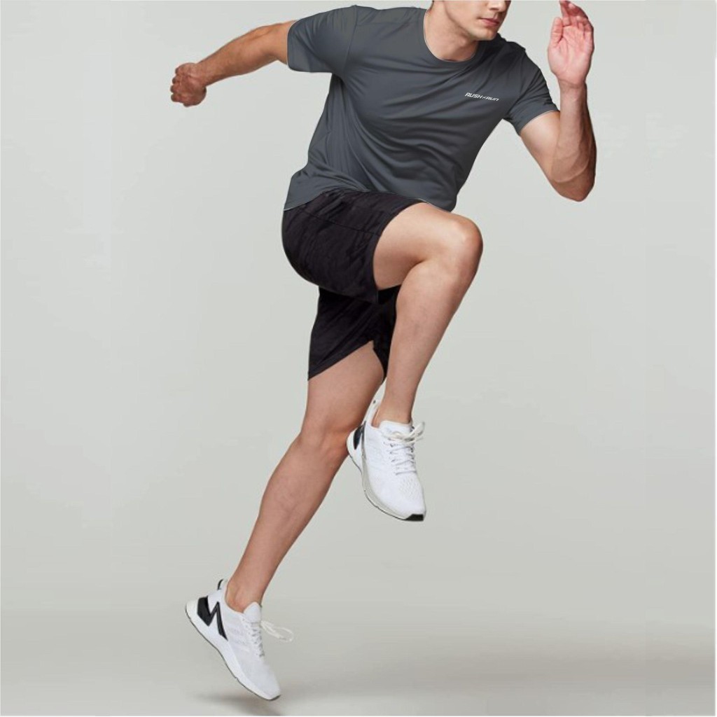 Rush N Run 3 Kaos Olahraga Pria Bahan Dry Fit Lengan Pendek Pakaian Sport Nyaman Menyerap Keringat