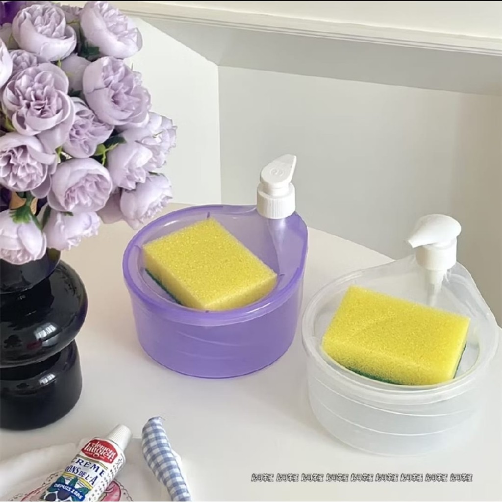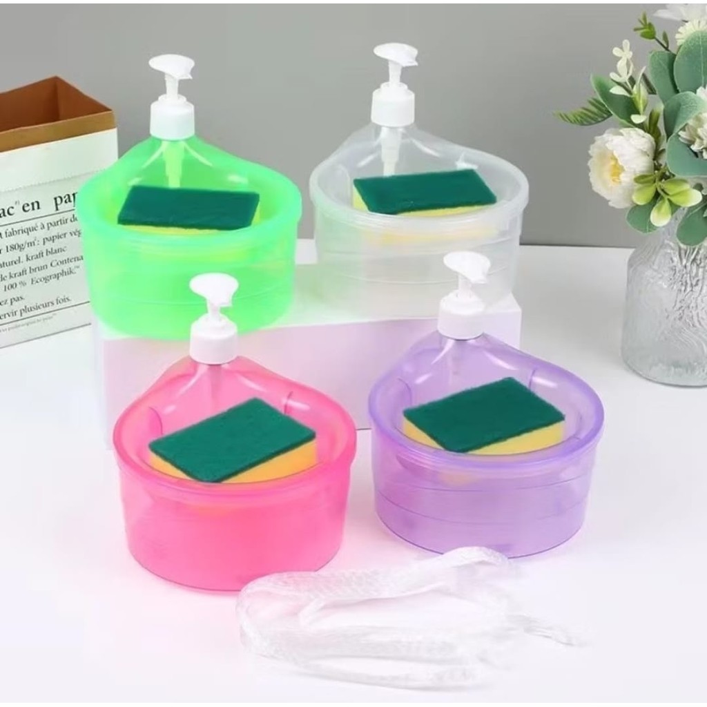 Dispenser Sabun Tempat Sabun Cuci Piring + Sabut Spon Tempat Sabun Pump Free Spons