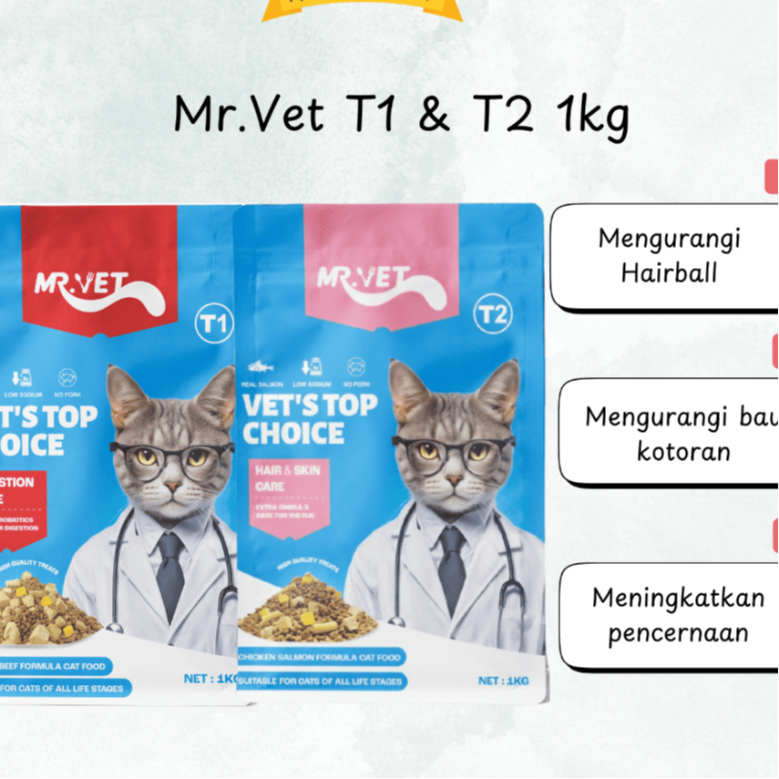Makanan Kucing Kering Mr.Vet T1 Atau Mr.Vet T2