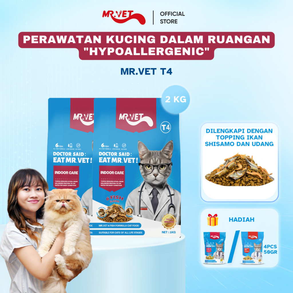 Mr. Vet - Kombo 2 Makanan Kucing Kering Mr.Vet 2KG T1,T2,T3 dan T4