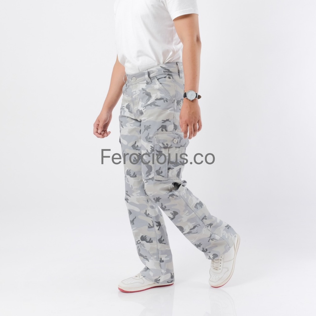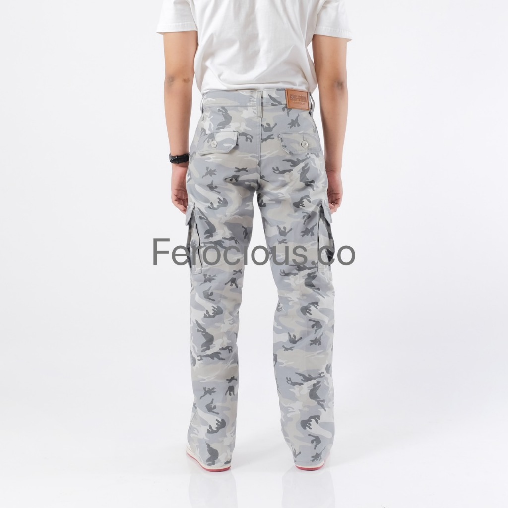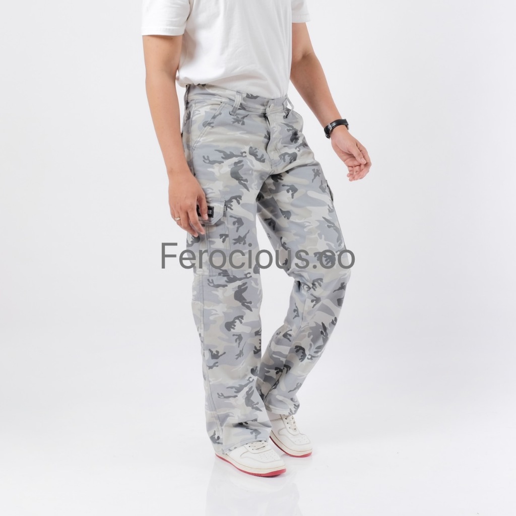 FEROCIOUS.CO Celana Gombrang Cargo Camo Loreng White Grey Reguler Fit Loose Fit Standar