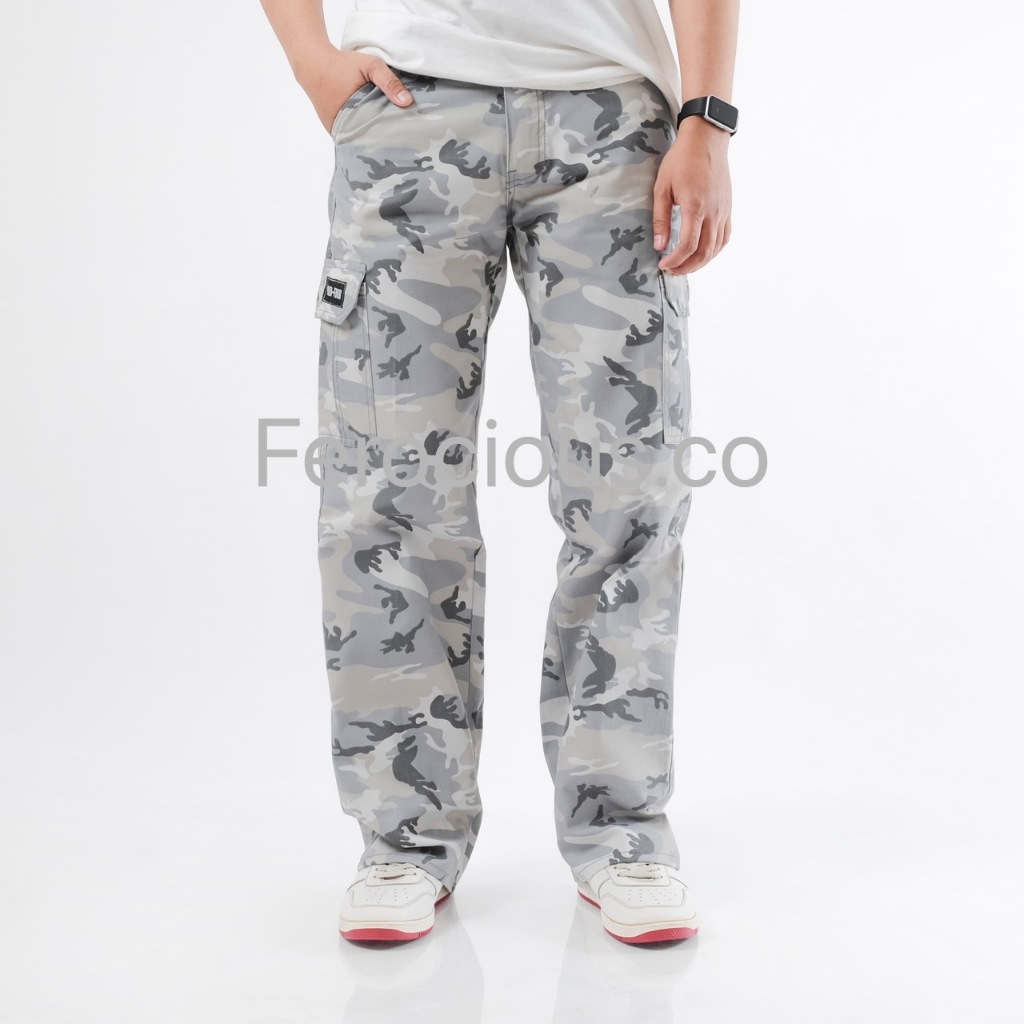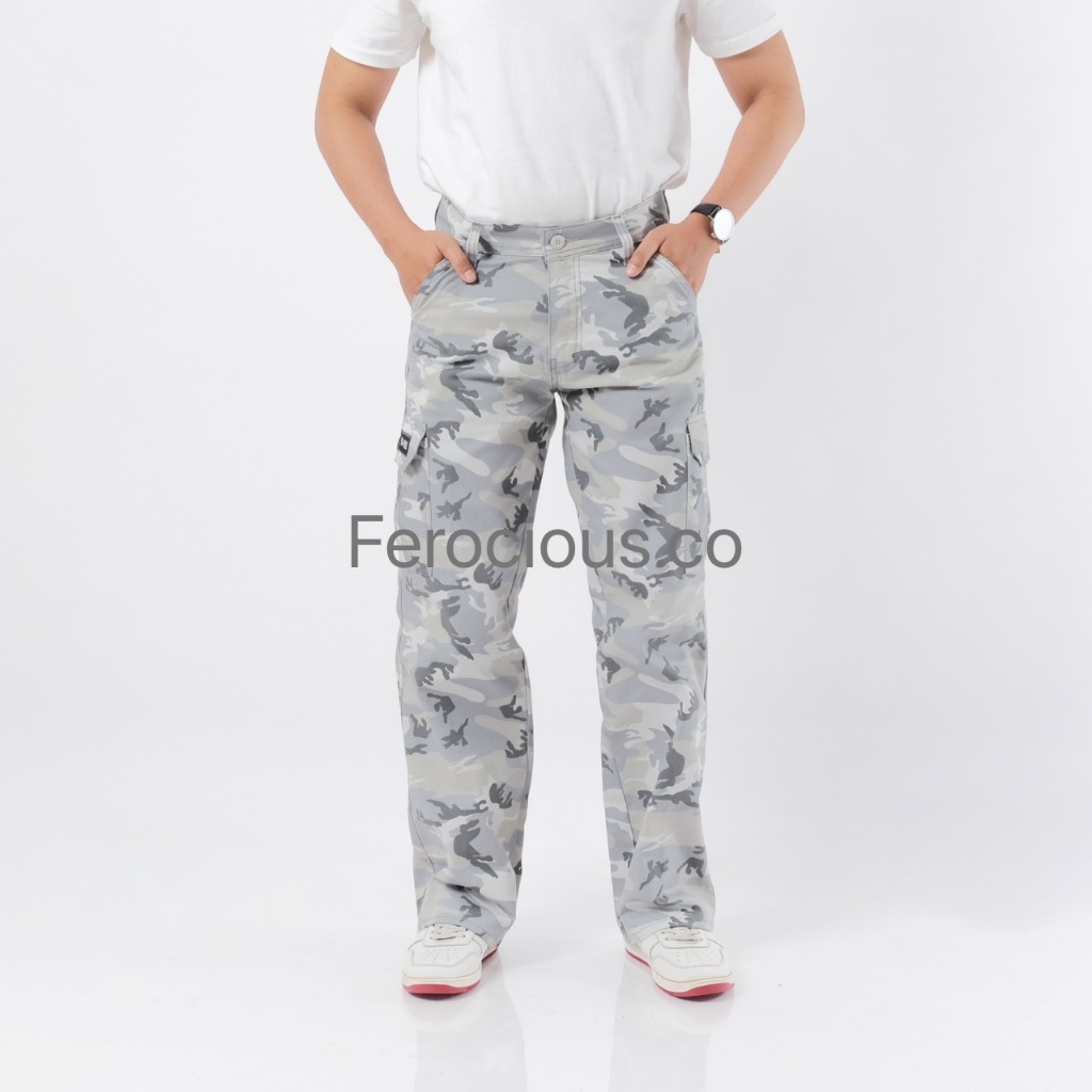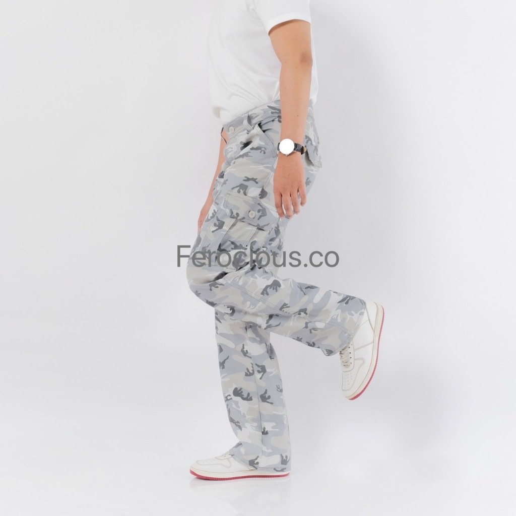FEROCIOUS.CO Celana Gombrang Cargo Camo Loreng White Grey Reguler Fit Loose Fit Standar