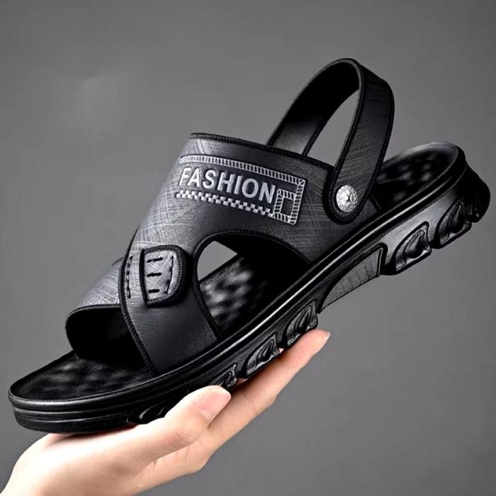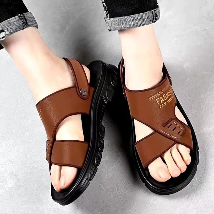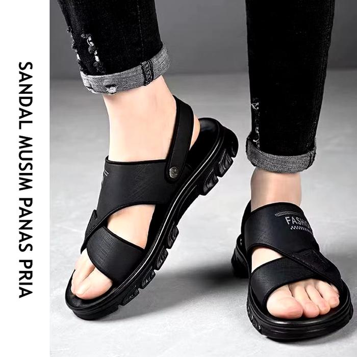 [Star]Sandal Pria Kulit Terbaru Nyaman Empuk Kekinian DF57 - Hitam, 39