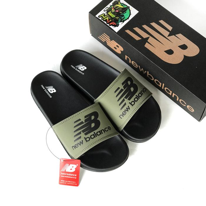 [Star]Sandal Selop Pria NB Olive Black Bahan Empuk Dan Ringan Free Paper Bag - Olive Black, 36