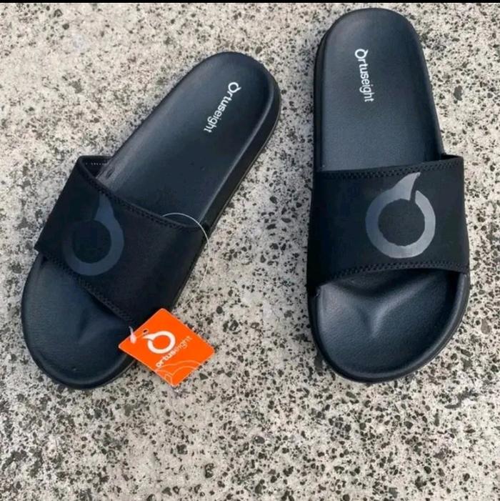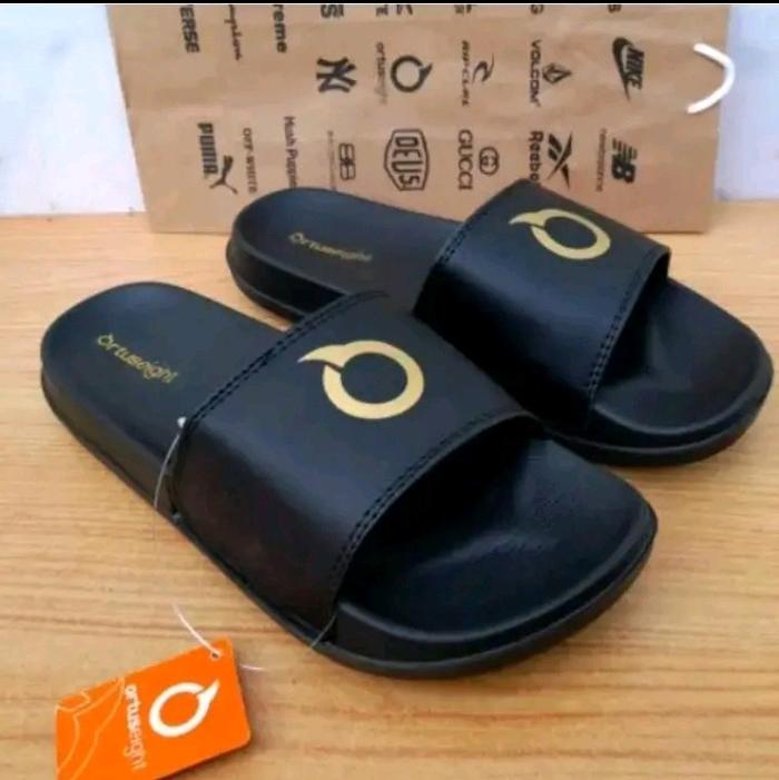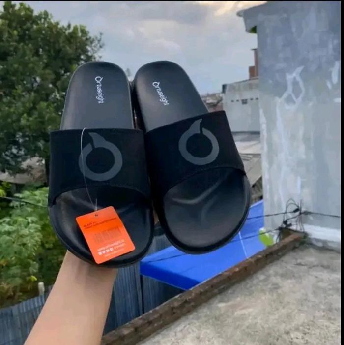 [Star]Sandal Slop SIMPEL Slide Premium Cowok Cewek Pria Wanita Anti Slip Anti licin Sendal Shoes - Logo tengah fullblack