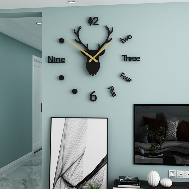 Jam Dinding DIY Quartz Creative Design Model Deer Head 80cm - Q8073 - Black