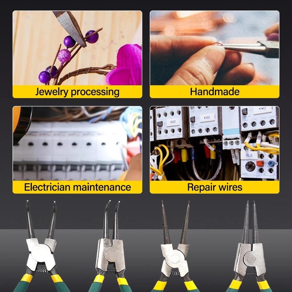 4 pcs Tang Circlip Pliers set 7 Inch Set Tang Circlip Bengkok / Tang Penjepit Bengkok 7" Set Cincin Snap Perkakas