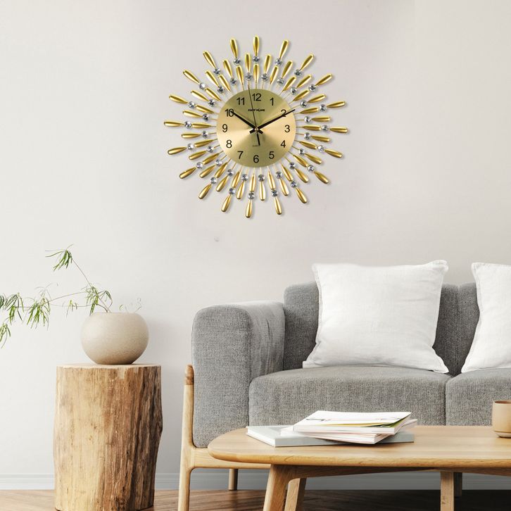 TaffHOME Jam Dinding 3D Quartz Clock Creative Luxury Diamond 38cm - H74 - Golden
