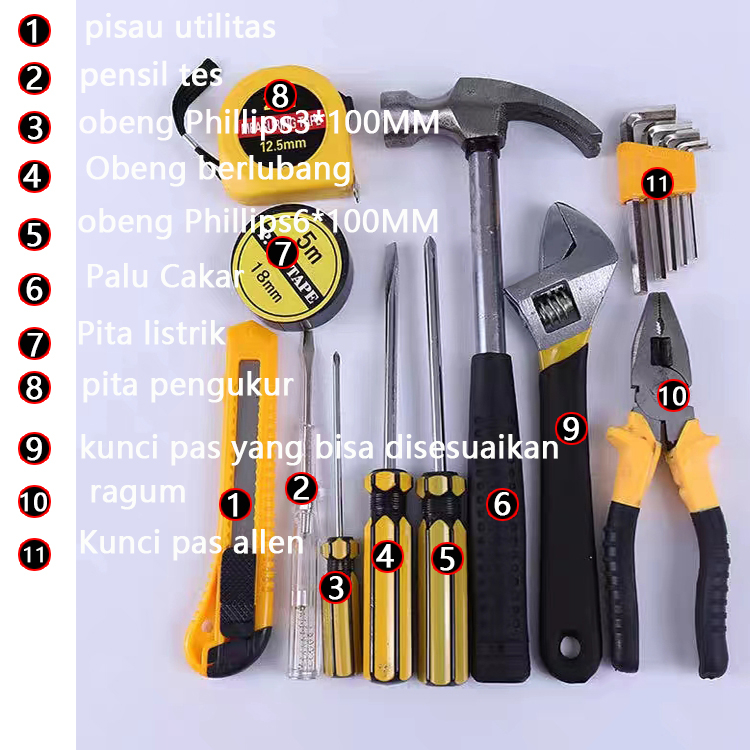 Tool Box Set Perkakas Palu Tang Obeng Kunci Pas Cutter