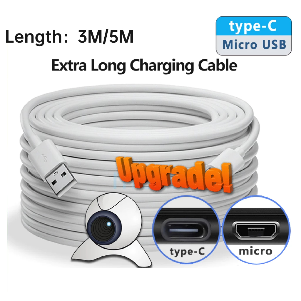 Kabel Data Micro USB Type C Charger 3 Meter/5 Meter Extra Long Wire Cord for CCTV Kamera