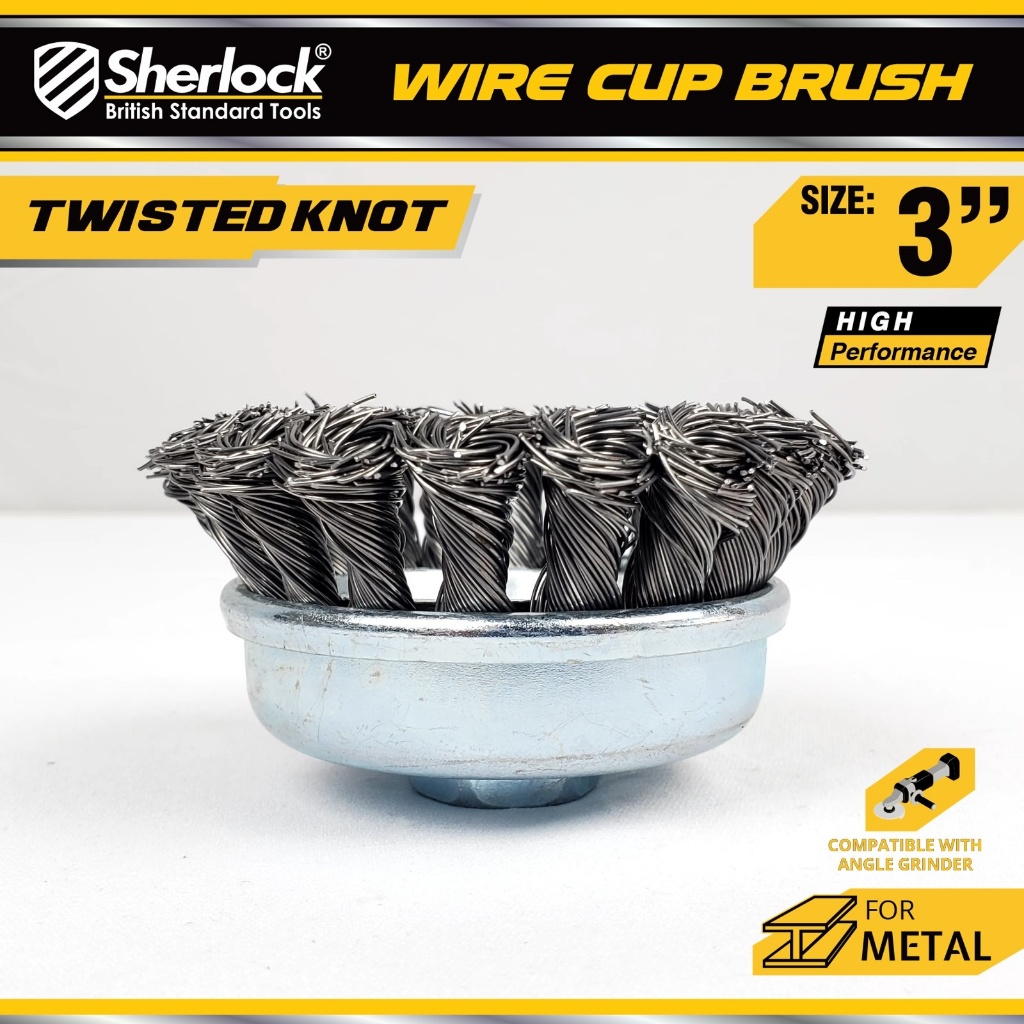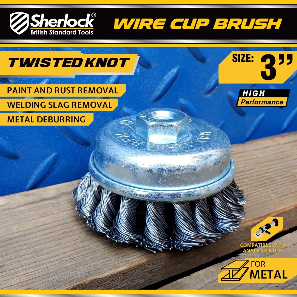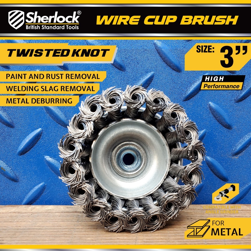 Sherlock Sikat Mangkok Kawat Kepang Knot Gurinda 3 " Inch Twisted Steel Wire Cup Brush Sikat Pembersih Kerak - Heavy Dut