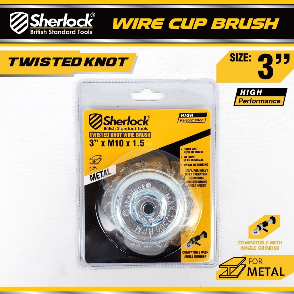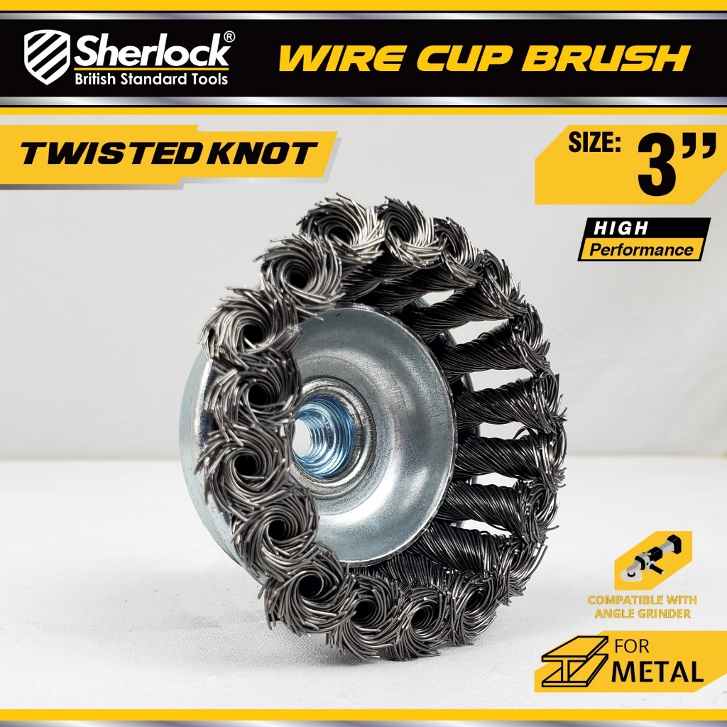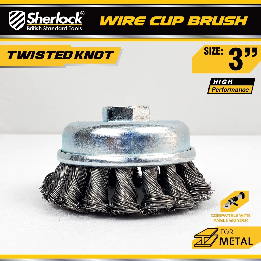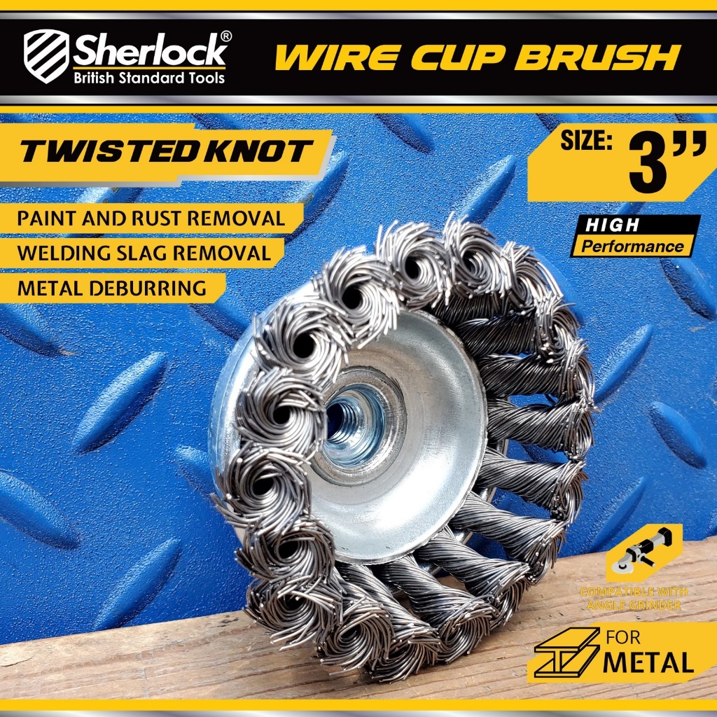 Sherlock Sikat Mangkok Kawat Kepang Knot Gurinda 3 " Inch Twisted Steel Wire Cup Brush Sikat Pembersih Kerak - Heavy Dut
