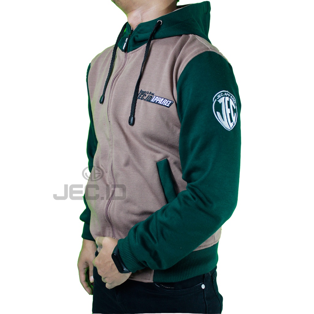 Jaket Hoodie Premium Jec Apparel Mocca Combi Hijau Botol | Switer | Sweater | Sweeter | Hudie | Baseball