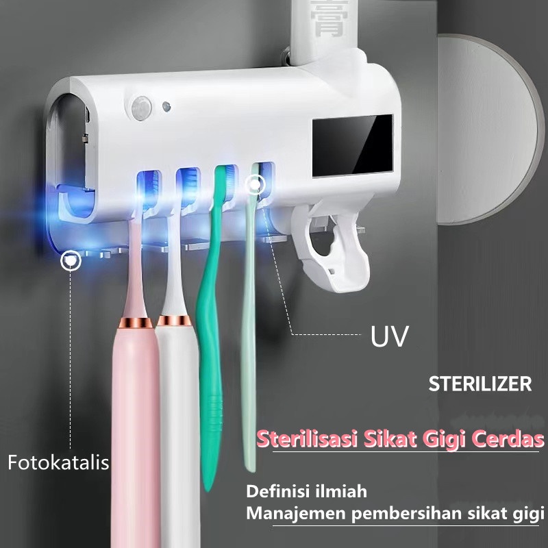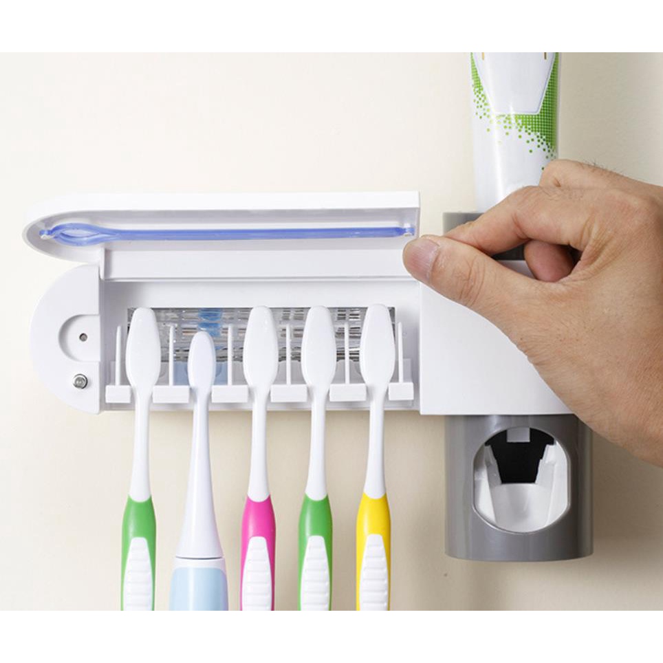 Dispenser Odol Tempat Sikat Gigi TOUCH ME Rak ToothPaste & Brush Set WHITE Otomatis Pasta Holder