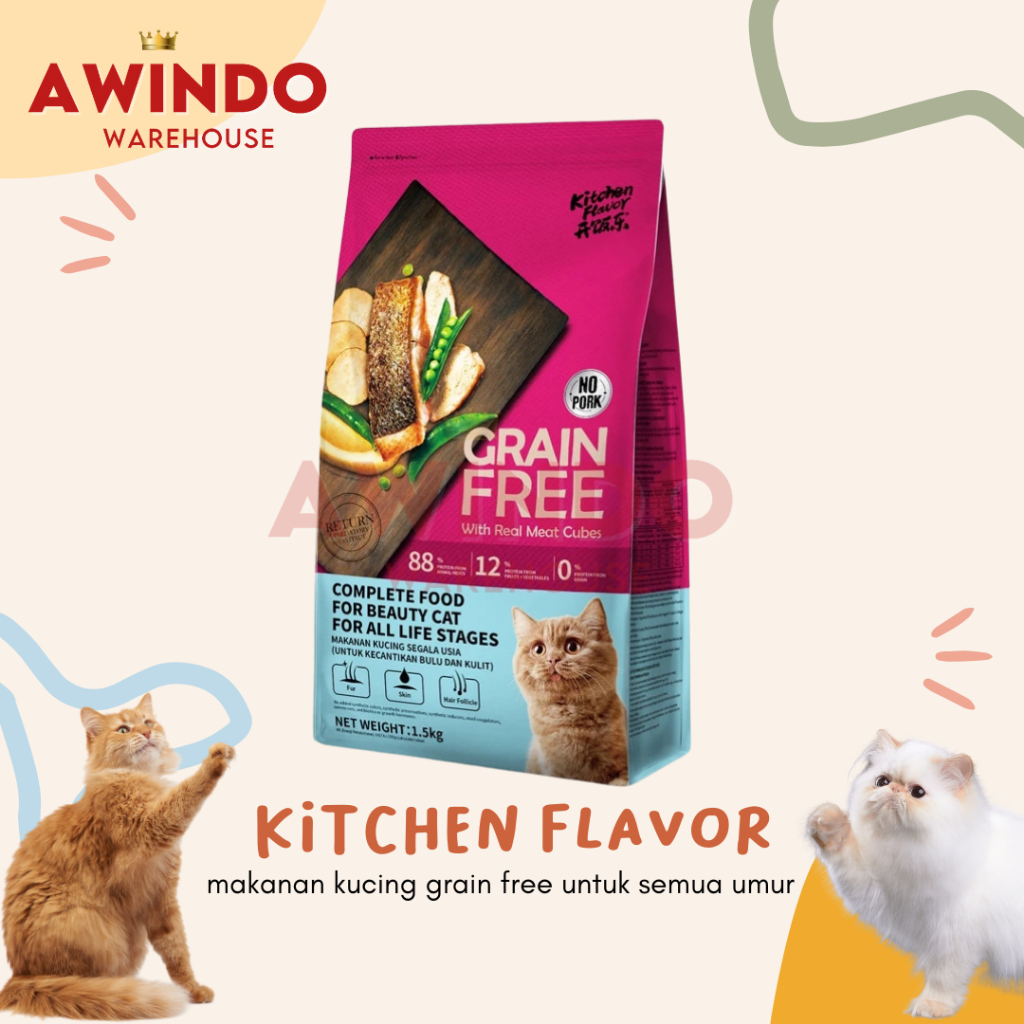 KITCHEN FLAVOR KF03 - Makanan Kucing Kering Dewasa Kitchen Flavor Grain Free Beauty All Life Stages Food 1.5kg