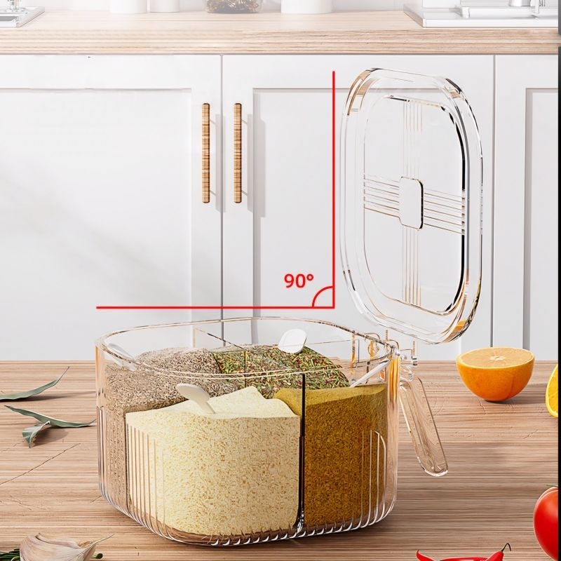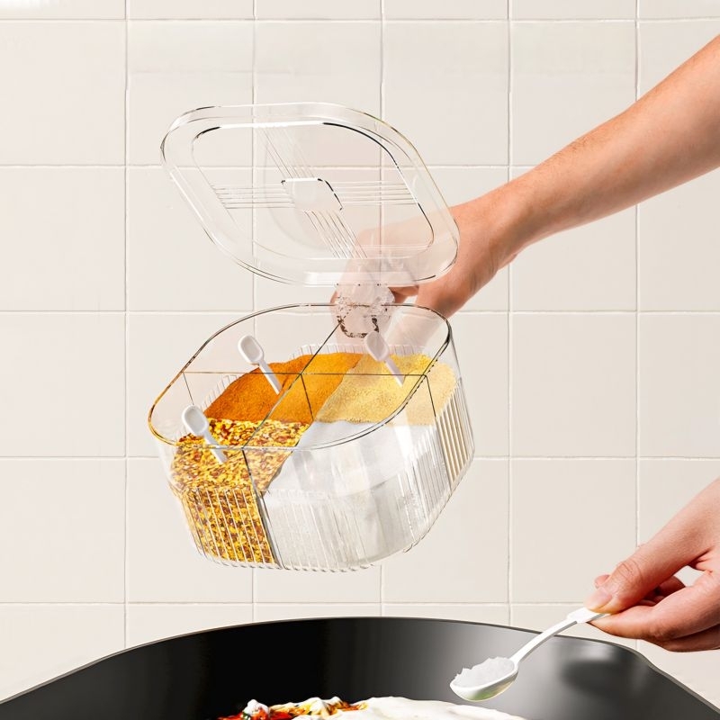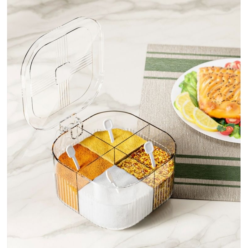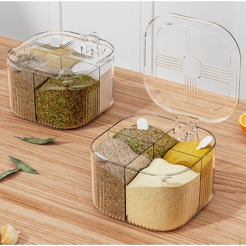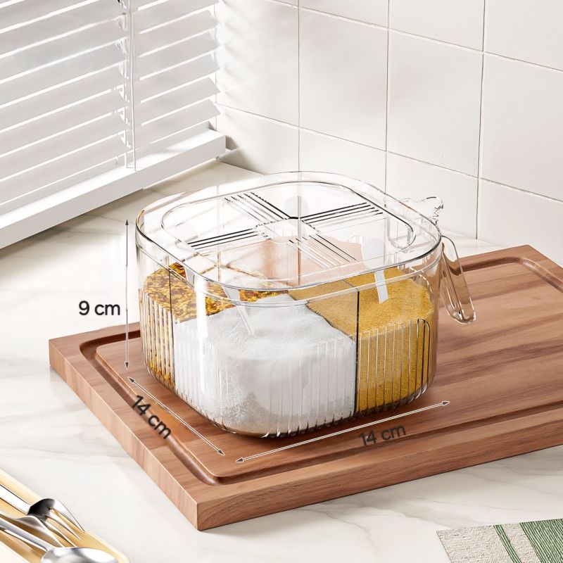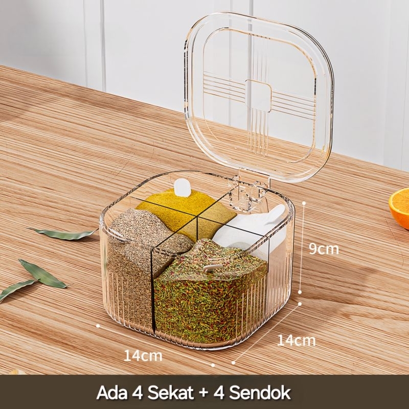 Kotak penyimpanan Bumbu Dapur 4 in 1 Transparan Wadah Penyimpanan Termasuk 4 sendok Tempat Bumbu Rempah Besar Tebal