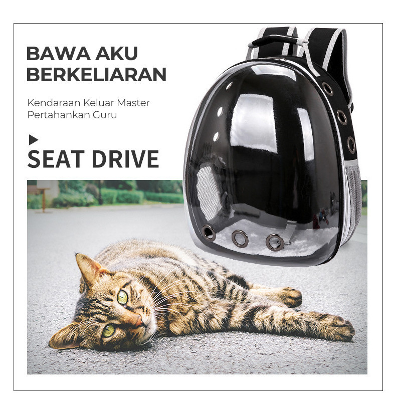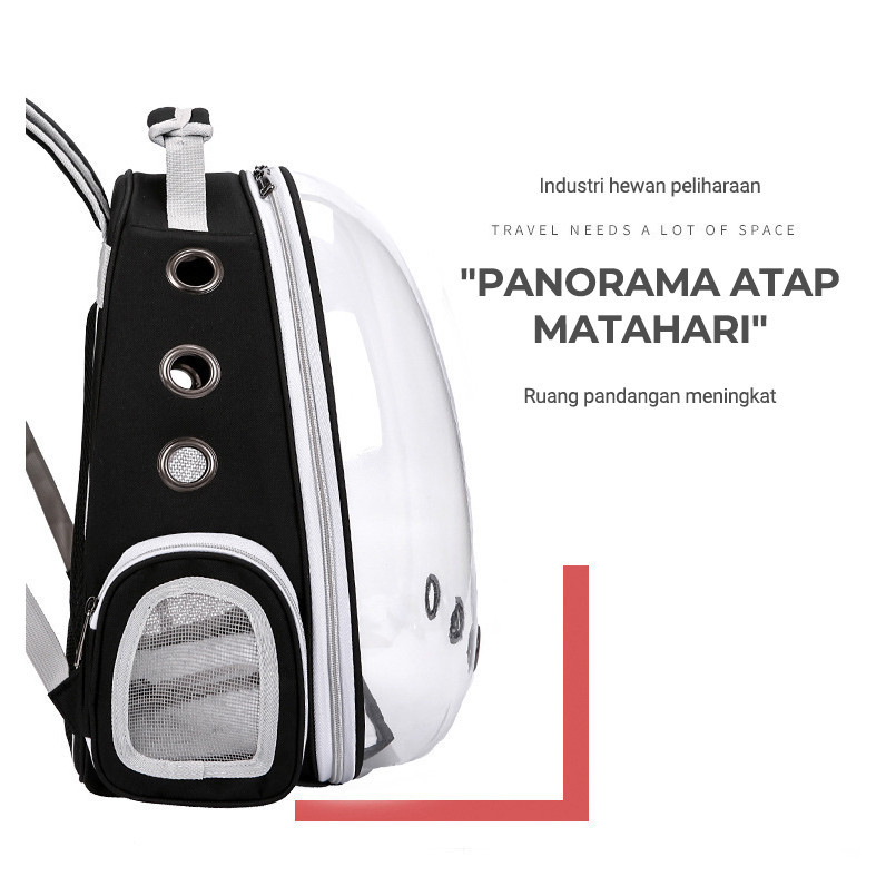 Tas Ransel Astronot Kucing Tansparan Pintu Samping / Tas Travel Gendong Hewan Kucing & Anjing
