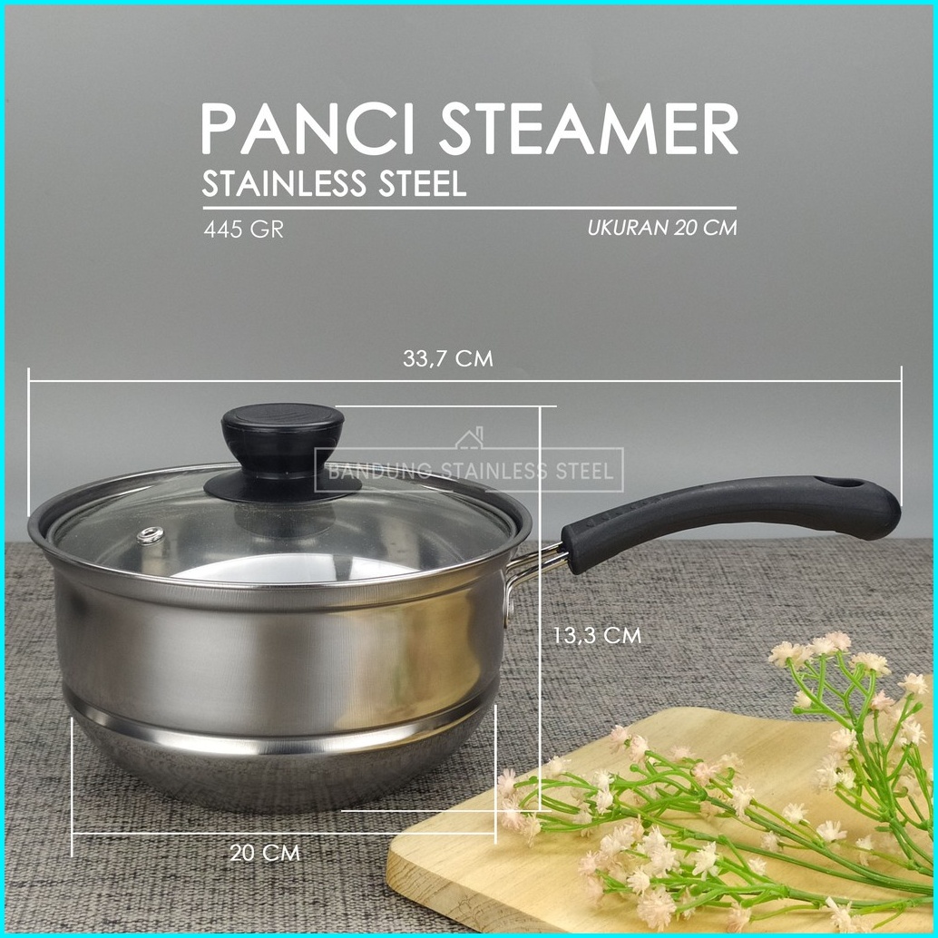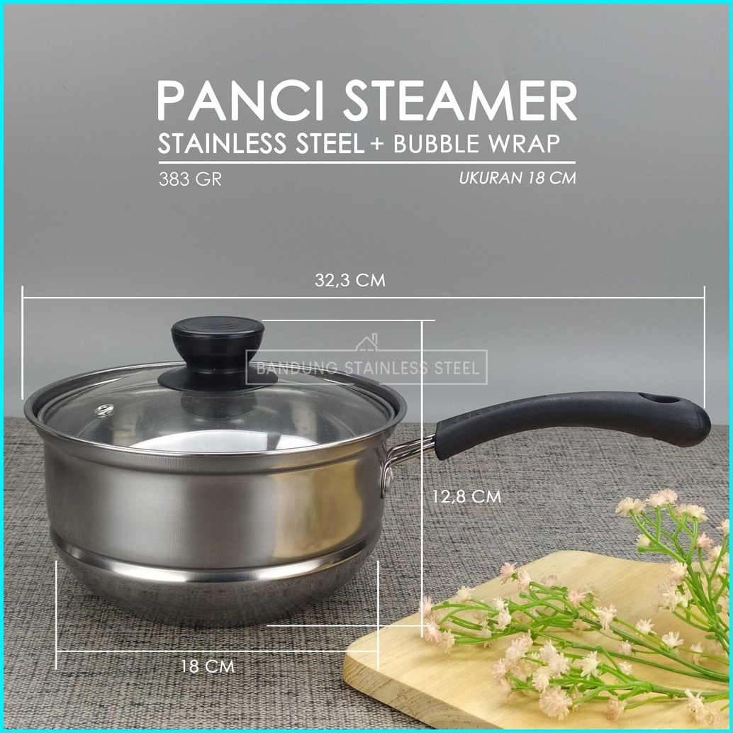 Promo Panci Kukus Steamer 18cm 20cm Milk Pot Stainless Steel Tutup Kaca Murah