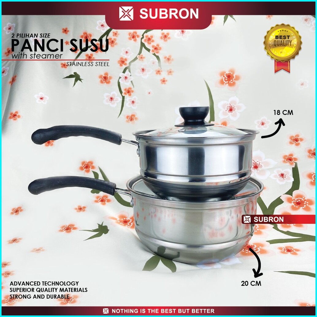 Subron Panci Susu Milk Pot Steamer Kukus 18cm 20cm Stainless Kukusan Makanan Masakan