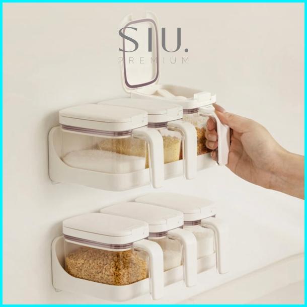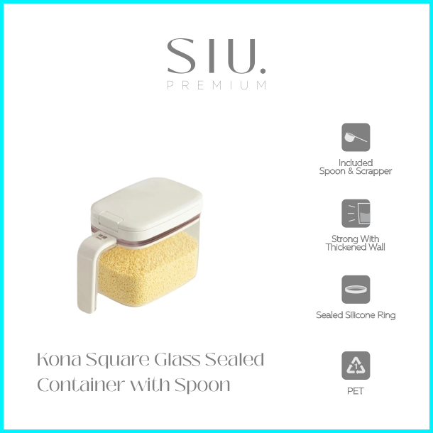 Siu. Premium - Kona Square Sesaoning Container Free Spoon And Scrapper - Kotak Bumbu Dapur Kedap Udara Silen Jumbo
