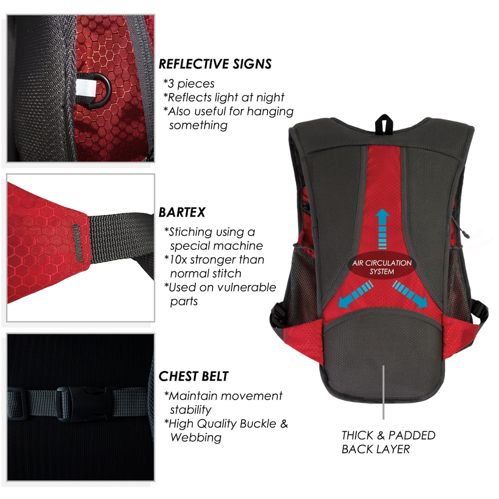 Carion Tas Ransel Hydropack Sepeda MTB XC Downhill Trail Running Almo Red