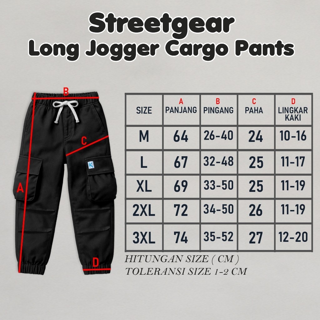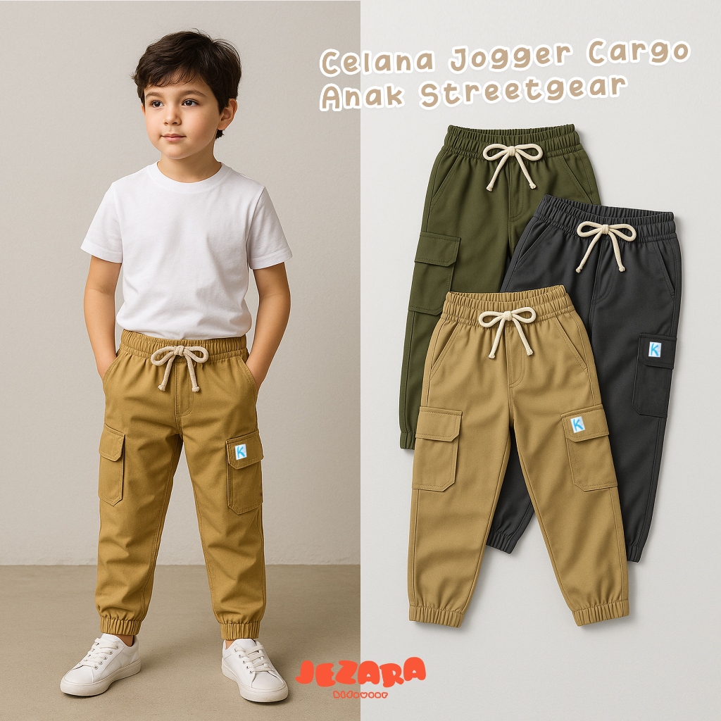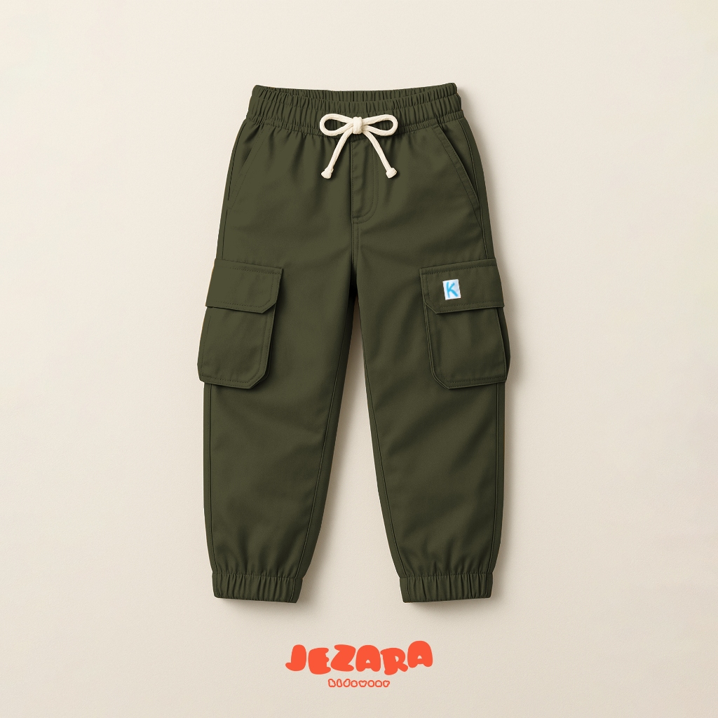 Jezara Celana Jogger Cargo Anak Streetgear Laki-laki Perempuan 3-14 Tahun