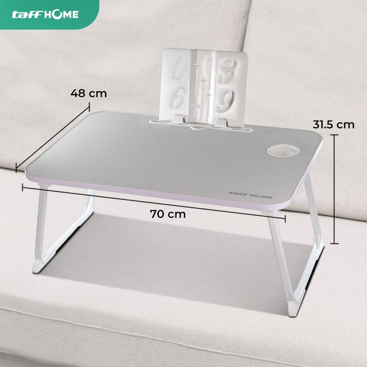 TaffHOME Meja Lipat Laptop Foldable Bed Table with Drawer Cup Holder 70x48cm - BO-67 - White