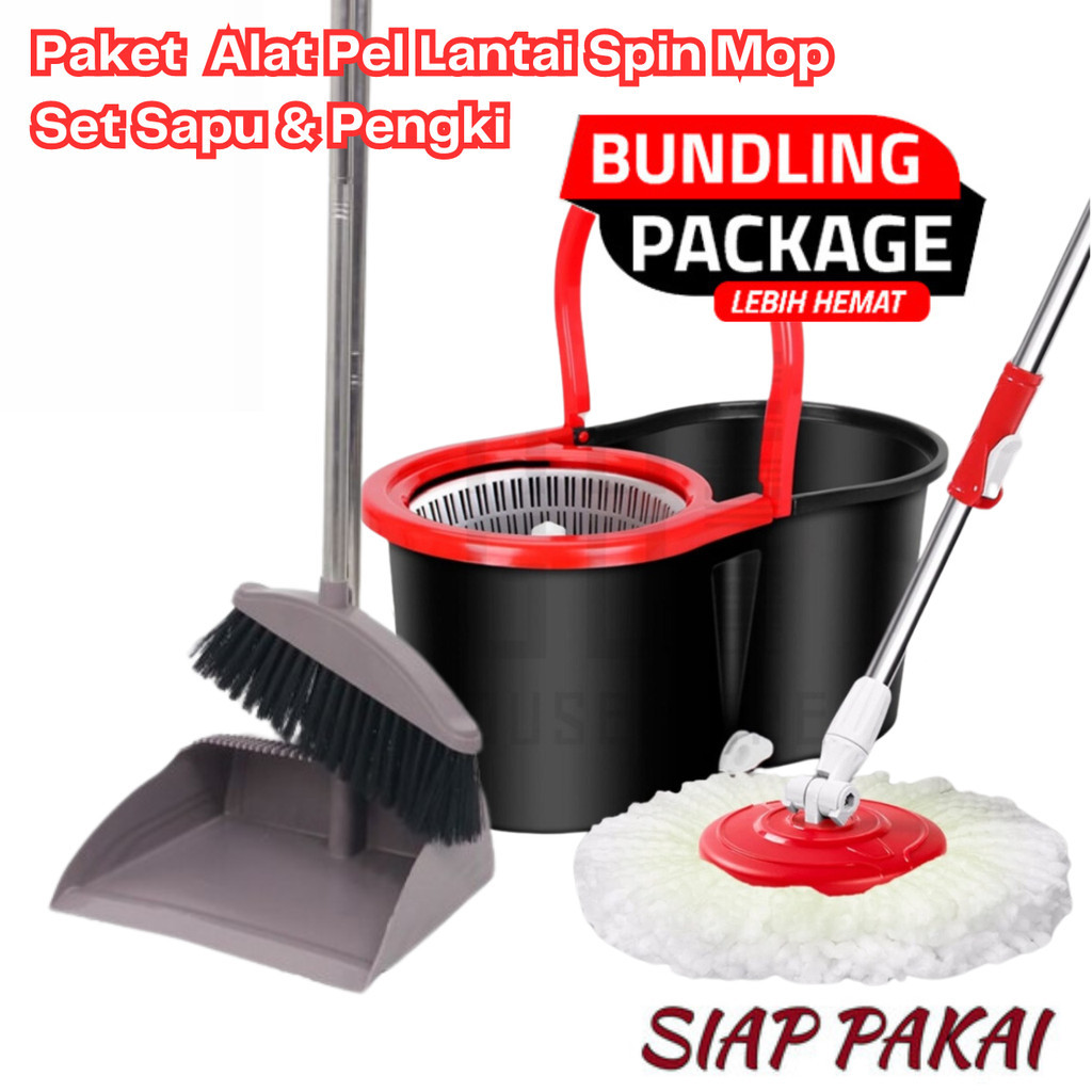 Paket Bundle Hemat Pel Lantai Ultra Mop Aclima Spin Mop + Sapu Pengki Set - Package Alat Kebersihan