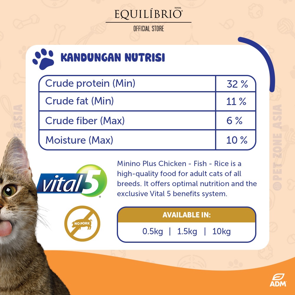 Minino Plus Chicken & Fish & Rice 10 Kg - Makanan Kering Kucing - Cat Dry Food