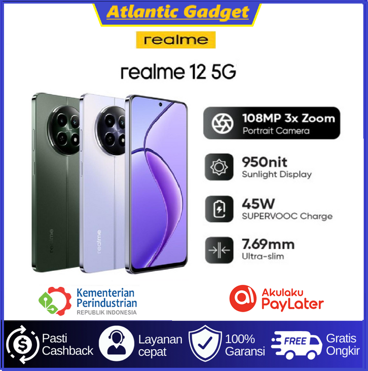 (BEBAS DP) Realme 12 5G RAM 8/256GB | MediaTek Dimensity 6100 | NFC | 108MP Kamera | Baterai 5000mAh 45W Fast Charging